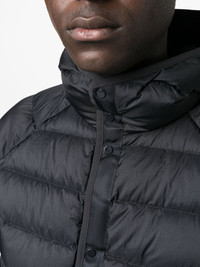 logo-print layered coat Highlights - Navy blue - Duck feather - Layered design - Classic hood - Front zip fastening - Front button fastening - Long sleeves - Two front flap pockets - Mid-length Imported Composition Outer: Polyamide 100% Lining: Polyamide 100%, Duck Feathers 90%, Feather 10% SIZE & FIT Model measurements Height 6 ft 2 in(1.87 m) Bust/Chest 36.41 in(92.5 cm) Hips 37 in(94 cm) Waist 29.52 in(75 cm) FittingInformation Designed to be unstructured, offering a loose fit throughout The detachable panel offers the preference for a different fit Made from a midweight non-stretch fabric This piece fits true to size – take your usual size