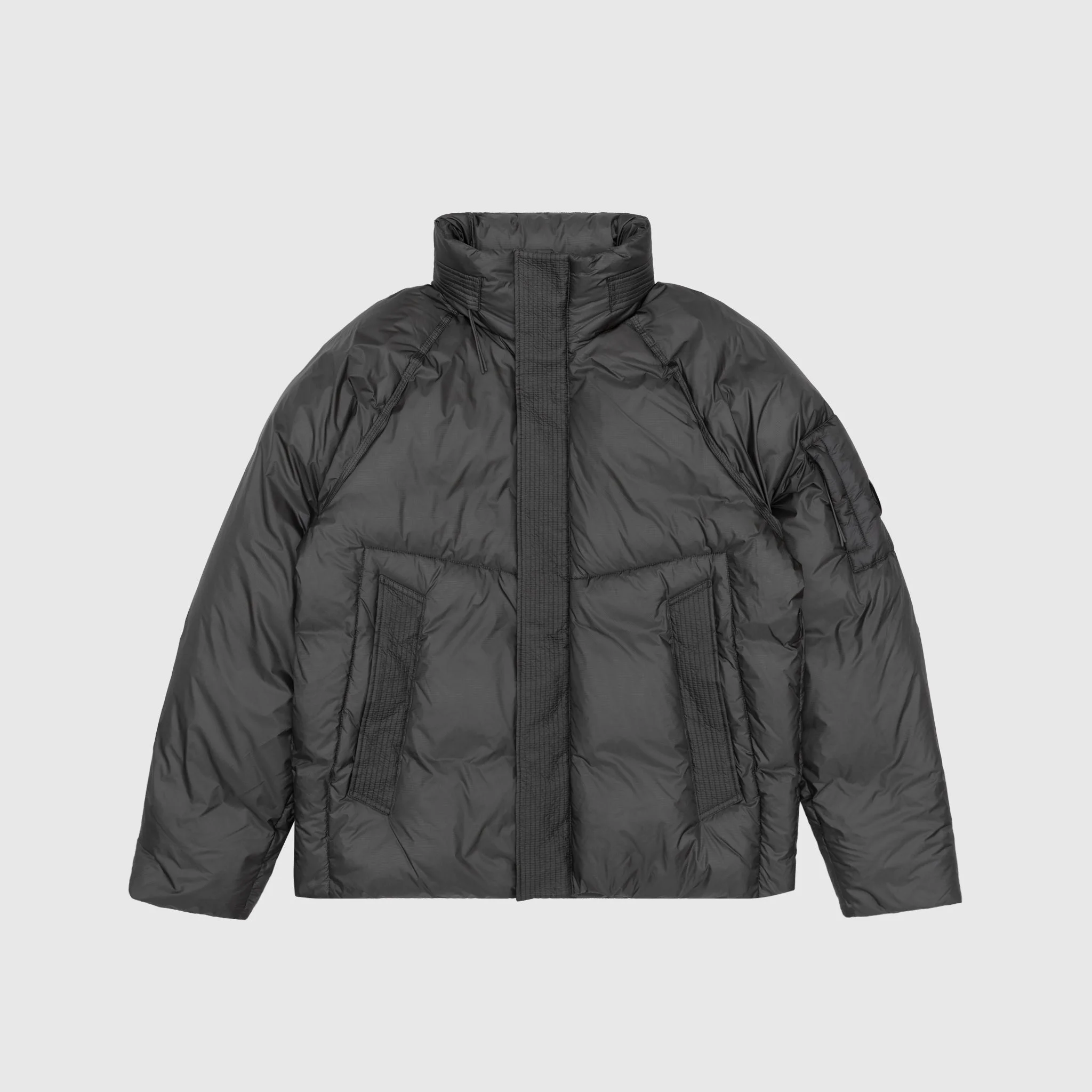 - 19CMOW183A11-0467A-921 - Gunmetal - 100% Polyamide/Nylon - Front zupper closure under placket - Two front pockets with a zipper closure - C.P. Company Lens detailing on the sleeve - Stand-up collar with stow-away hood - Raglan sleeves - Regular fit