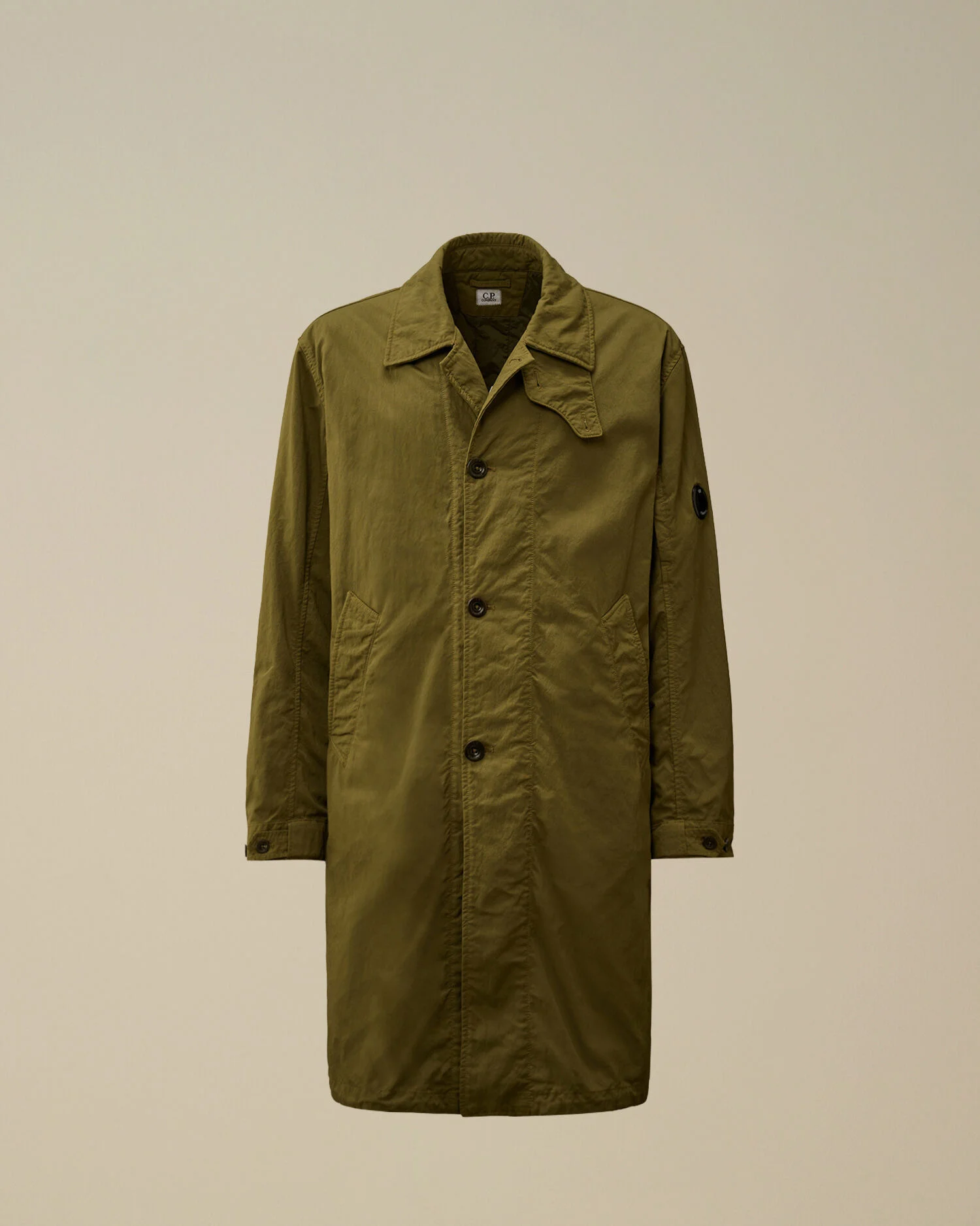 Fishtail padded coat crafted in heavy-duty left-hand twill, woven from two nylon taslan yarns. The coat features C.P. Company’s iconic Lens, a classic collar with a button placket, full button and snap fastening, and side pockets. Finished with a fishtail hem. Wadding padded and garment dyed. Regular fit. - Classic collar with button placket - Full button fastening with snap hem - Side pockets - Lens detail - Adjustable button cuffs - Fishtail hem - Garment dyed - Wadding padded - Regular fit CARE & COMPOSITION Care - Wash max 30°C - Mild process - Do not bleach - Do not tumble dry - Ironing maximum temperature 110°C - without steam - Do not dry clean - Line dry in the shade - Wash separately - Wash inside out - Do not soak - Remove detachable accessories before washing Composition - External fabric: 100% Polyamide / Nylon - Lining: 100% Polyamide / Nylon - Padding (Fiber): 100% Polyester - Secondary lining: 100% Polyamide / Nylon SIZE & FITTING - Fits true to size, take your normal size - Model is 186 cm-6' 1" / 98-103 cm chest and is wearing a size L PRODUCT PASSPORT PRODUCT - Weaving: Korea - Dyeing: Italy - Confection: Romania - Releases plastic microfibers into the environment during washing PACKAGING - Minimum percentage of recycled materials 70%