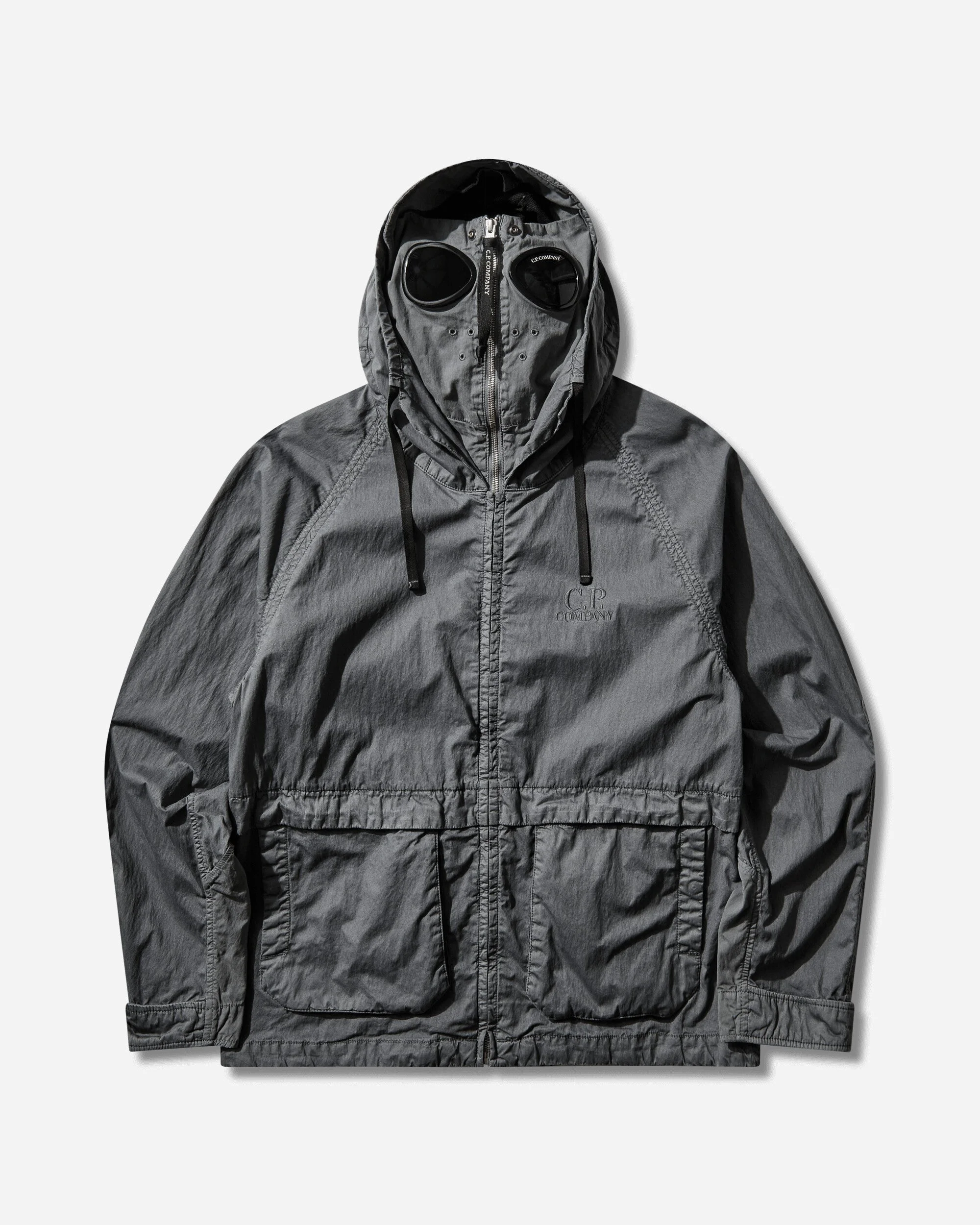 C.P. Company Wax Explorer Jacket Gunmetal Explorer jacket crafted in waxed cotton blend for a structured feel with water-repellent properties. Garment dyed for depth of color. Features an adjustable explorer hood, full zip closure, snap front pockets, and embroidered chest logo. Regular fit. - 75% Cotton, 25% Polyamide - Regular Fit - Garment Dyed - Waxed Cotton Fabric - Water-Repellent - Adjustable Explorer Hood - Full Zip Closure - Embroidered Logo at Chest - Front Snap Pockets - Adjustable Cuffs - Style Code: 20CMOW110A-110543D 921