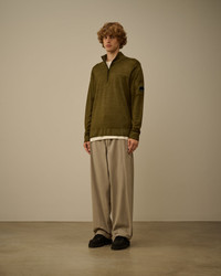 Half zip sweater crafted in merino wool. The Fast Dyed process prevents the colour from penetrating uniformly into the fibre, creating a melange effect. The knit features a ribbed neck and C.P. Company’s iconic Lens. Finished with contrast stitching at the armholes and grid-knit panels on the shoulders. Gauge 12. Regular fit. - Ribbed neck - Half zip fastening - Lens detail - Armholes contrast stitching - Shoulders grid-knit panels - Ribbed cuffs and hem - Fast dyed - 12 Gauge knit - Regular fit CARE & COMPOSITION Care - Hand wash - Do not bleach - Do not tumble dry - Ironing maximum temperature 110°C - without steam - Dry cleaning in tetrachloroethene - mild process - Flat drip dry in the shade - Fabric may release color - wash separately and inside out - Remove detachable accessories before washing - Dry inside out Composition - External fabric: 100% Wool SIZE & FITTING - Fits true to size, take your normal size - Model is 186 cm-6' 1" / 98-103 cm chest and is wearing a size L PRODUCT PASSPORT PRODUCT - Weaving: Italy - Dyeing: Romania - Confection: Moldova PACKAGING - Minimum percentage of recycled materials 70%