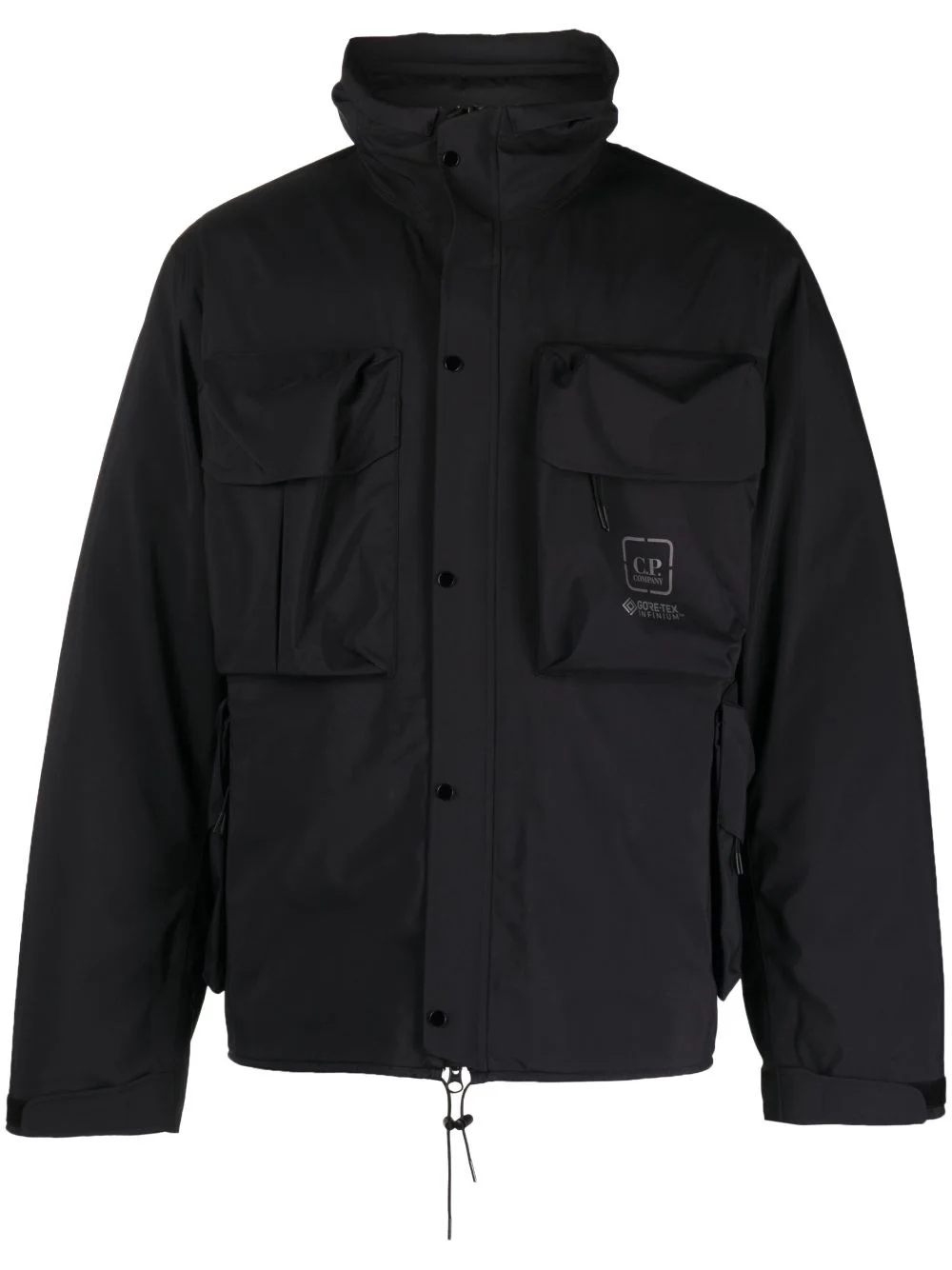 logo-print two-pocket windbreaker Highlights - Black - Duck down - Logo print to the front - High neck - Front button fastening - Long sleeves - Two chest flap pockets - Two side zip-fastening pockets - Straight hem Made in United Kingdom Composition Outer: Polyamide 100% Lining: Polyamide 100%, Duck Down 90%, Feather 10% SIZE & FIT Model measurements Height 6 ft 2 in(1.87 m) Bust/Chest 36.41 in(92.5 cm) Hips 37 in(94 cm) Waist 29.52 in(75 cm) FittingInformation Designed for a relaxed fit, this piece allows for comfort and movement when worn The detachable panel offers the preference for a different fit Made from a midweight non-stretch fabric This piece fits true to size – take your usual size