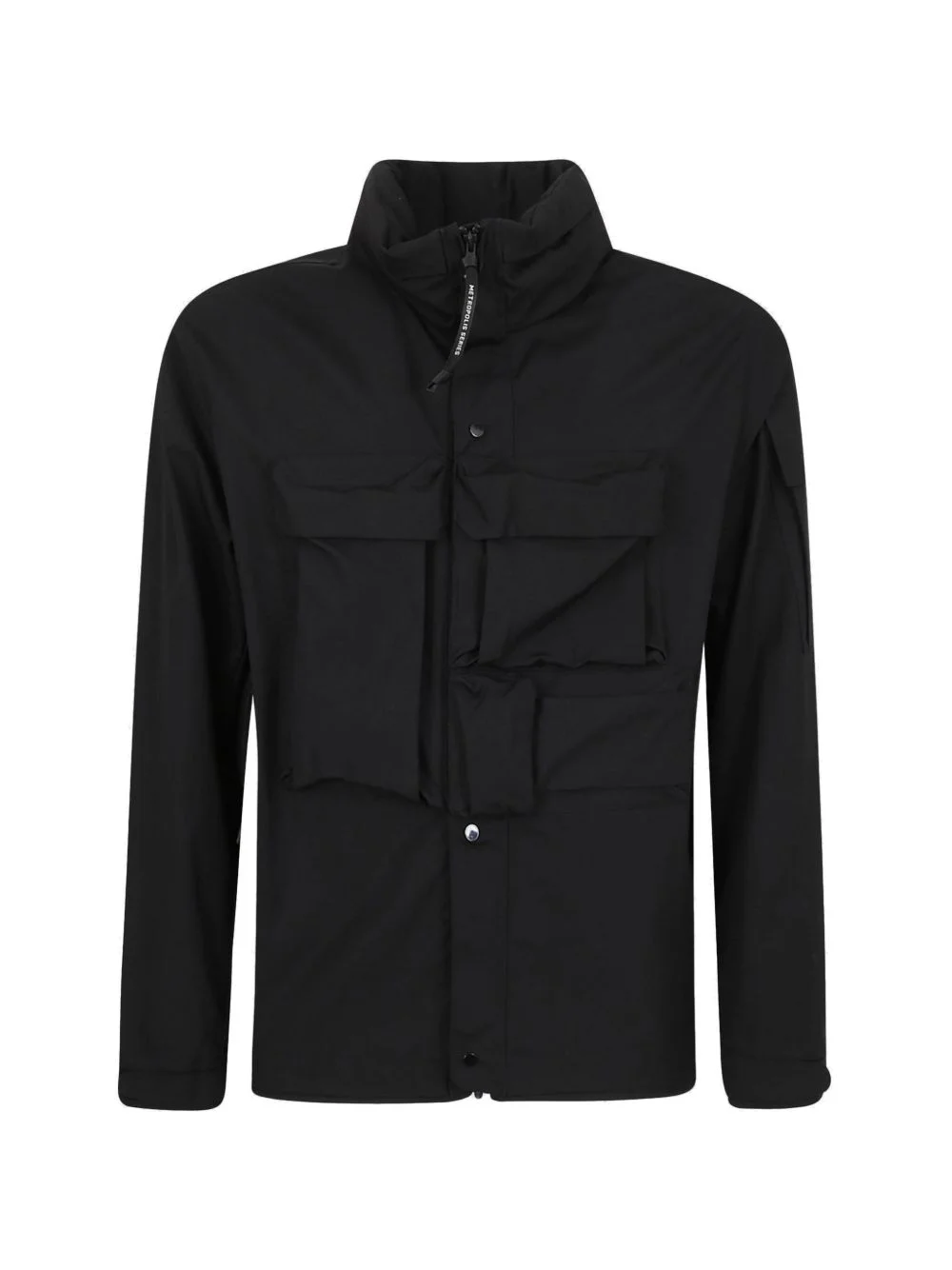 Metropolis Series Hyst foldable hood jacket Highlights - Black - Cotton - Front flap pockets - High neck - Button fastening - Long sleeves - C.p. company suggests removing any detachable accessories before washing. Imported Composition Outer: Cotton 100% Lining: Cotton 100% Washing instructions Machine Wash