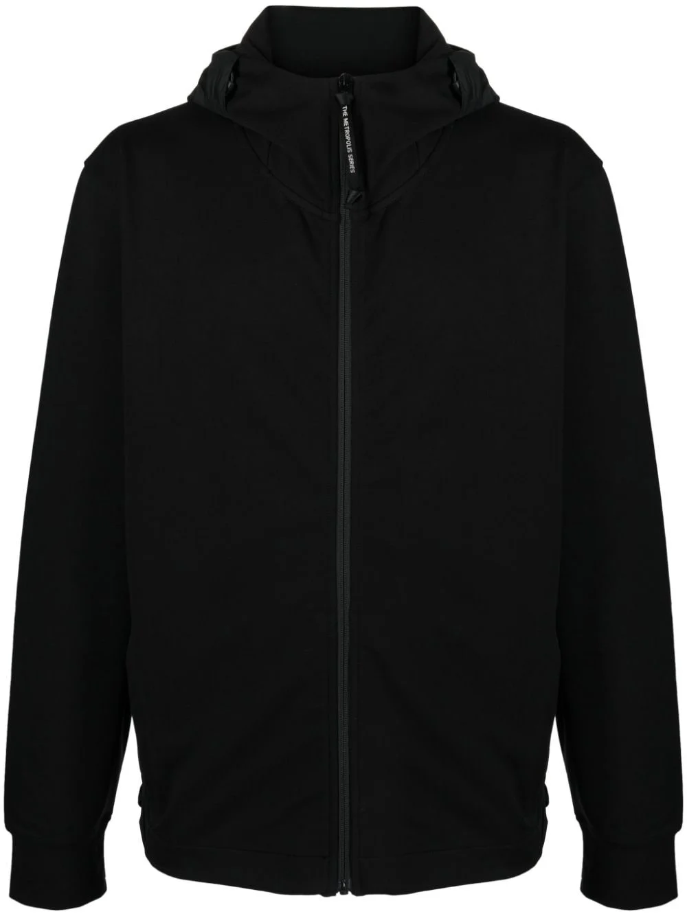 Metropolis Series zip-up hooded jacket Highlights - Black - Stretch-cotton - Jersey texture - Pertex - Nano rip stop 2l - Logo print to the side - High neck - Drawstring hood - Long sleeves - Ribbed cuffs - Two side zip-fastening pockets - Side pouch pockets - Rear curved hem Imported Composition Polyamide 100%, Cotton 95%, Elastane 5% SIZE & FIT Model measurements Height 6 ft 2 in(1.87 m) Bust/Chest 38.18 in(97 cm) Hips 36.61 in(93 cm) Waist 29.13 in(74 cm) FittingInformation The internal drawstring at the hem allows for fitted preferences Washing instructions Machine Wash
