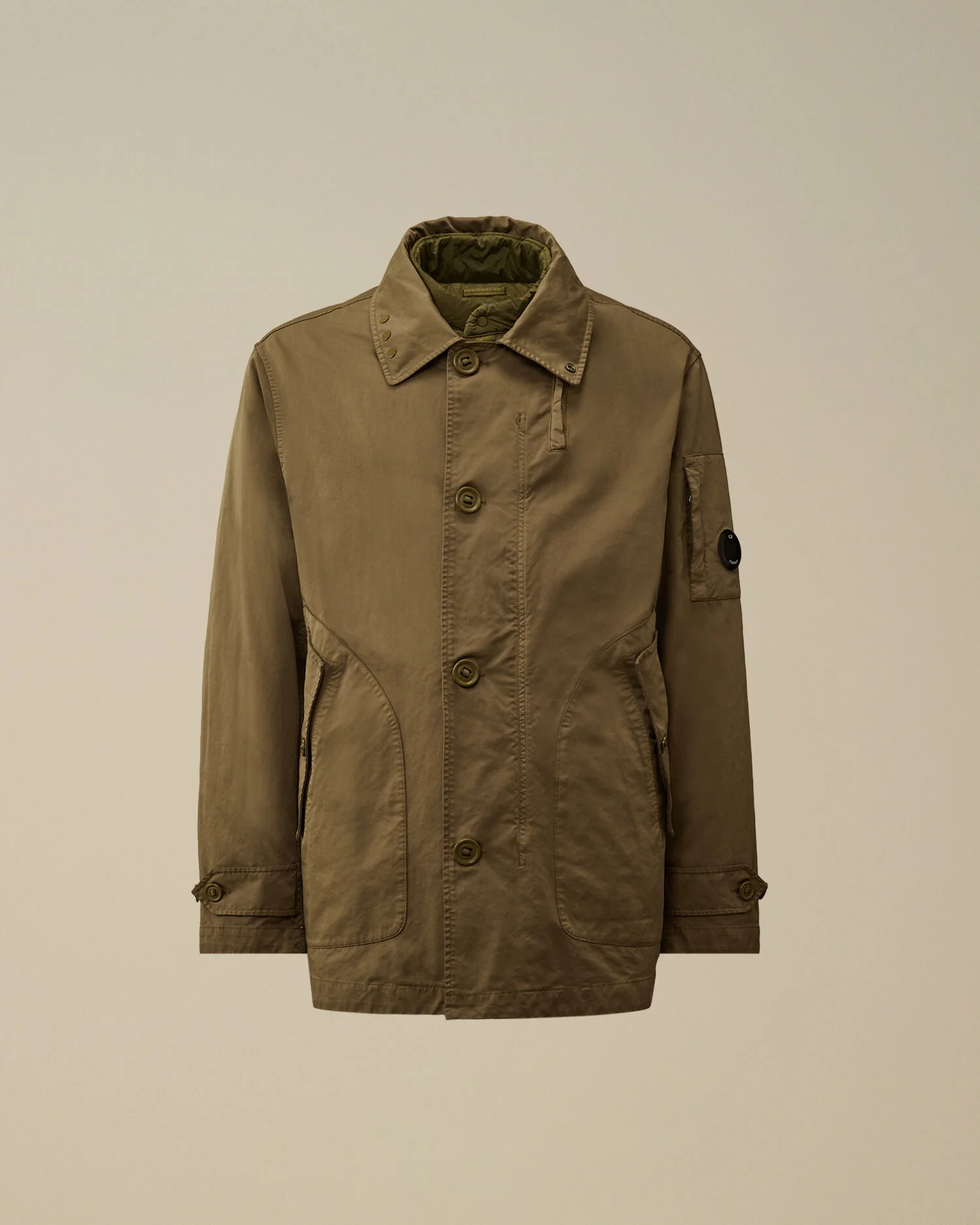Hooded coat crafted in Micro Kei, a soft and durable Polyester/nylon microfiber engineered for all-weather conditions. The coat features a concealable zip hood, an adjustable snap collar, and a hidden full zip fastening with a flap button closure. Complete with side flap button pockets, adjustable button cuffs, and C.P. Company’s iconic Lens detail. The coat includes a detachable down lining for versatile insulation. Garment dyed with anti-drop treatment. Regular fit. - Concealable zip hood - Adjustable snap collar - Hidden full zip fastening with flap button closure - Side flap button pockets - Lens detail - Adjustable buttons cuffs - Detachable down lining with snap fastening - Garment dyed - Regular fit CARE & COMPOSITION Care - Wash max 30°C - Mild process - Do not bleach - Do not tumble dry - Ironing maximum temperature 110°C - without steam - Do not dry clean - Line dry - Wash separately - Wash inside out Composition - External main fabric: 66% Polyester, 34% Polyamide / Nylon - External fabric: 100% Polyamide / Nylon - Lining: 100% Polyamide / Nylon - Padding (Feather): [136gr. - 90% ] 90% Grey duck down, 10% Feather SIZE & FITTING - Fits true to size, take your normal size - Model is 186 cm-6' 1" / 98-103 cm chest and is wearing a size L PRODUCT PASSPORT PRODUCT - Weaving: Korea - Dyeing: China - Confection: China - Product contains at least 10% of recycled material - Releases plastic microfibers into the environment during washing PACKAGING - Minimum percentage of recycled materials 70%