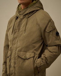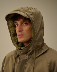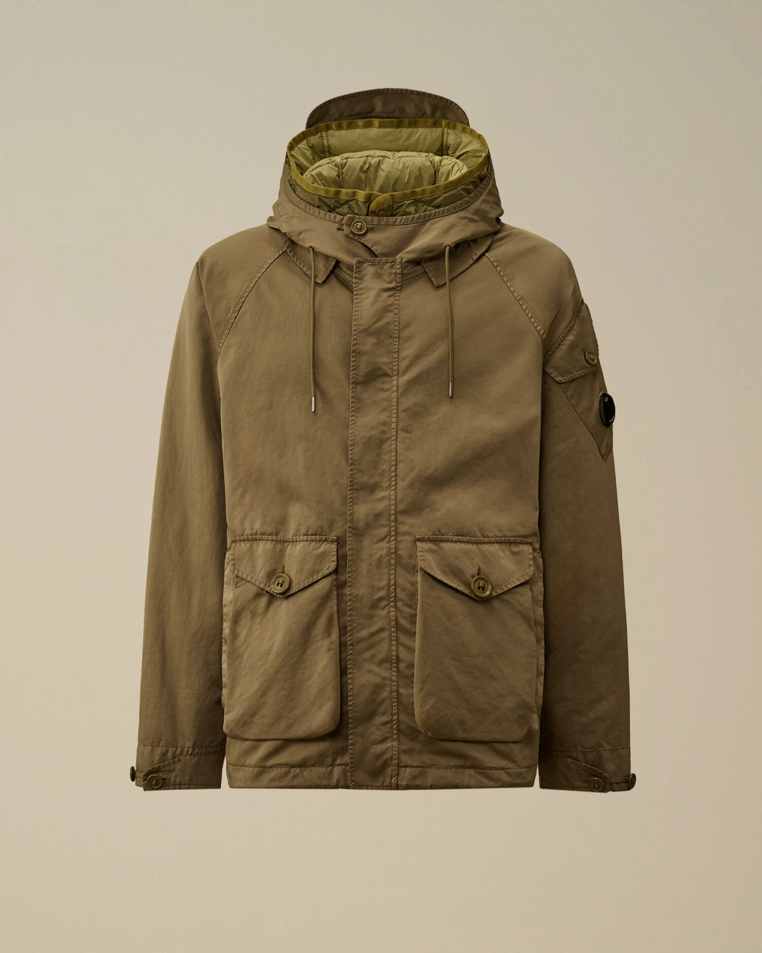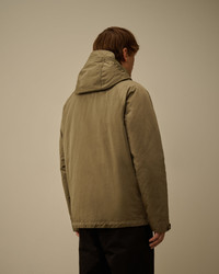 Hooded jacket crafted in Micro Kei, a soft and durable Polyester/nylon microfiber made engineered for all-weather conditions. The jacket features an adjustable visor hood with a button face guard, a hidden full zip fastening with a flap snap closure, and front patch button pockets with side flap snap openings. Finished with adjustable button cuffs and sleeve patch button pocket with Lens detail. The jacket includes a detachable hooded down lining for versatile insulation. Garment dyed with anti-drop treatment. Regular fit. - Adjustable visor hood with button face guard - Hidden full zip fastening with flap snap closure - Front patch buttons pockets with side flap snap opening - Sleeve patch button pocket with Lens detail - Adjustable button cuffs - Detachable hooded down lining with snap fastening - Garment dyed - Regular fit CARE & COMPOSITION Care - Wash max 30°C - Mild process - Do not bleach - Do not tumble dry - Ironing maximum temperature 110°C - without steam - Do not dry clean - Line dry - Wash separately - Wash inside out Composition - External main fabric: 66% Polyester, 34% Polyamide / Nylon - External fabric: 100% Polyamide / Nylon - Lining: 100% Polyamide / Nylon - Padding (Feather): [137gr. - 90% ] 90% Grey duck down, 10% Feather SIZE & FITTING - Fits true to size, take your normal size - Model is 186 cm-6' 1" / 98-103 cm chest and is wearing a size L PRODUCT PASSPORT PRODUCT - Weaving: Korea - Dyeing: China - Confection: China - Product contains at least 15% of recycled material - Releases plastic microfibers into the environment during washing PACKAGING - Minimum percentage of recycled materials 70%