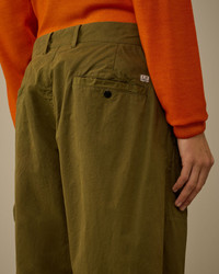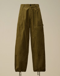 Cargo pants crafted in cotton reps with double buffing through diamond or carbon cylinders on the face. The pants feature C.P. Company’s iconic Lens, button and zip fastening, pinces, and belt loops. Complete with side pockets, a thigh flap snap pocket, and a back button pocket. Finished with back welt flap snap pockets with an applied label and adjustable drawstring hems. Garment dyed. Boxy fit. - Button and zip fastening - Pinces - Belt loops - Side pockets - Thigh flap snap pocket - Back button pocket with Lens detail - Back welt flap snap pockets with applied label - Adjustable drawstring hems - Garment dyed - Boxy fit CARE & COMPOSITION Care - Wash max 30°C - Mild process - Do not bleach - Do not tumble dry - Ironing maximum temperature 110°C - without steam - Do not dry clean - Line dry - Wash separately - Wash inside out - Iron inside out - Remove detachable accessories before washing Composition - External fabric: 100% Cotton SIZE & FITTING - Fits true to size, take your normal size - Model is 186 cm-6' 1"/ 88-91 cm waist and is wearing a size 48 PRODUCT PASSPORT PRODUCT - Weaving: Turkiye - Dyeing: Tunisia - Confection: Tunisia PACKAGING - Minimum percentage of recycled materials 70%