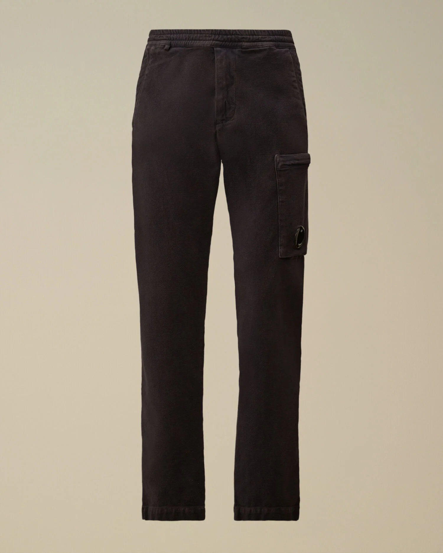 Cargo pants crafted in stretch cotton moleskin. The pants feature an adjustable drawstring waistband with hidden zip fastening, side pockets, and a cargo zip pocket with C.P. Company’s iconic Lens. Complete with a back snap pocket with an applied logo label. Garment dyed. Regular fit. - Adjustable drawstring waistband with hidden zip fastening - Side pockets - Cargo zip pocket with Lens detail - Back snap pocket with applied logo label - Garment dyed - Regular fit CARE & COMPOSITION Care - Wash max 30°C - Mild process - Do not bleach - Do not tumble dry - Ironing maximum temperature 110°C - without steam - Do not dry clean - Line dry - Wash separately - Wash inside out - Iron inside out - Remove detachable accessories before washing Composition - External fabric: 99% Cotton, 1% Elastane / Spandex SIZE & FITTING - Fits true to size, take your normal size - Model is 186 cm-6' 1"/ 88-91 cm waist and is wearing a size 48 PRODUCT PASSPORT PRODUCT - Weaving: Italy - Dyeing: Tunisia - Confection: Tunisia PACKAGING - Minimum percentage of recycled materials 70%
