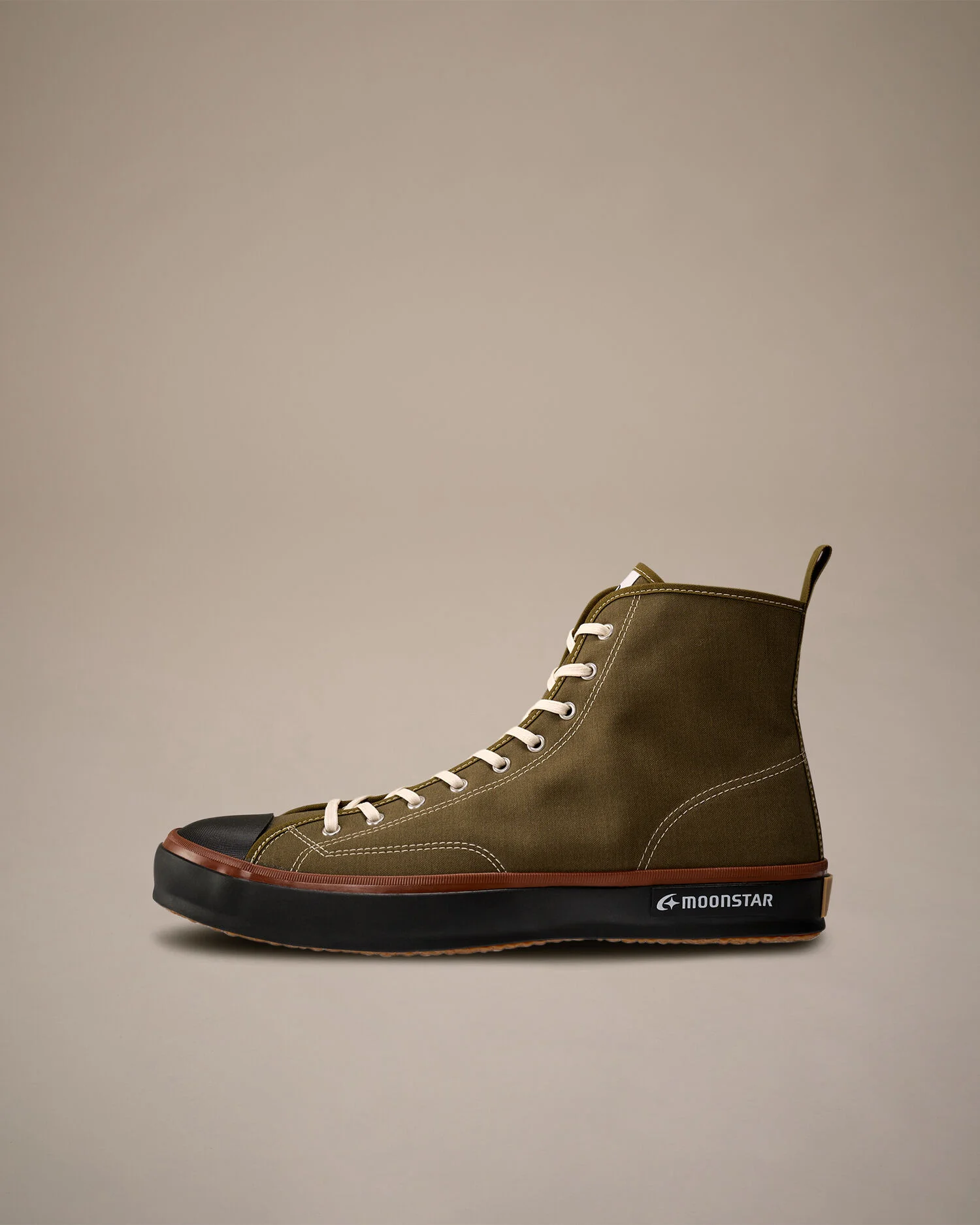 Hi Basket in Mais B cotton customized for C.P. Company by Moonstar, the Japanese footwear brand renowned for its expertise in fine vulcanisation. The vulcanisation process carried out in selected factories worldwide ensures flexible yet durable soles that retain their shape over time, the result of expert craftsmanship.Mais B is the contemporary evolution of Mais, one of the first fabrics developed by C.P. Company in the '80s.Panel dyed, made in Japan. - Textile upper - Lace closure - Moonstar and C.P. Company woven labels - Moonstar and C.P. Company rubber patch on the soles - Rubber heel patch - Insoles with printed Moonstar and C.P. Company logos - Fine vulcanized - Panel dyed - Made in Japan CARE & COMPOSITION Care - Clean only with a lukewarm damp cloth - Do not wash in the washing machine - Do not use chemical products - Do not dry in direct sunlight Composition - Upper: 100% Canvas cotton - Outsole: 100% Rubber SIZE & FITTING - We suggest to order 1 Size Bigger Than Regular US Size PRODUCT PASSPORT PRODUCT - Stitching: Japan - Finishing: Japan - Assembly: Japan PACKAGING - Minimum percentage of recycled materials 70%