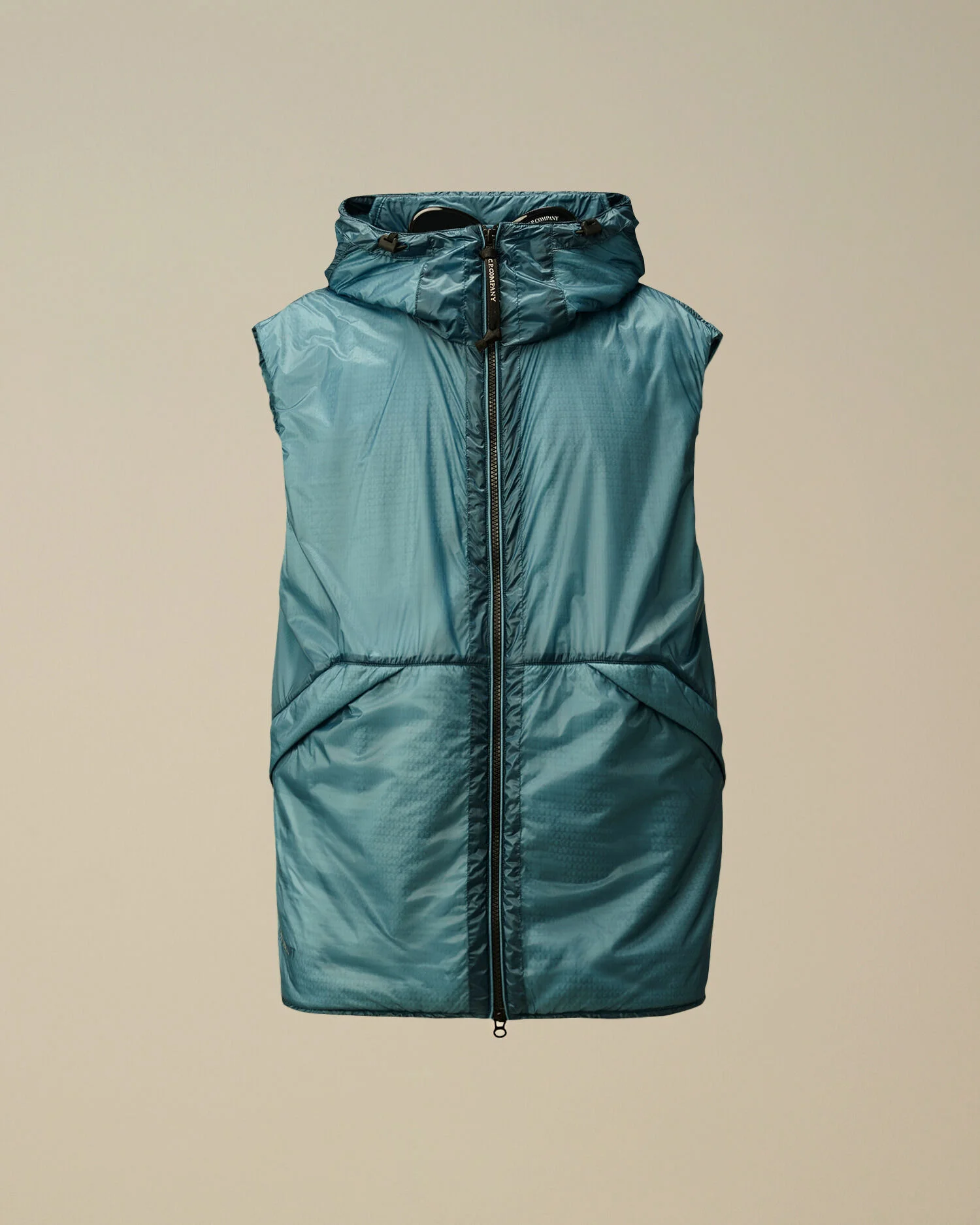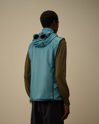 Goggle padded gilet crafted in Nada Shell, a micro-ripstop opaque 7-denier nylon, made with fine yarns for a light/dark effect. The vest features C.P. Company’s iconic Goggle hood, a two-way full zip fastening, and side zip pockets. Padded with Primaloft® Evolve wadding, a solution that combines the thermal advantages of insulation with the versatility of fabric. Padding made with 58% recycled Polyester, Global Recycled Standard certified (GRS). Regular fit. - Adjustable Goggle hood - Two-way full zip fastening - Side zip pockets - Adjustable drawstring hem - Primaloft® Evolve padding - Regular fit CARE & COMPOSITION Care - Wash max 30°C - Mild process - Do not bleach - Do not tumble dry - Ironing maximum temperature 110°C - without steam - Do not dry clean - Line dry - Wash separately - Remove detachable accessories before washing Composition - External fabric: 100% Polyamide / Nylon - Lining: 100% Polyamide / Nylon - Padding (Fiber): 100% Polyester SIZE & FITTING - Fits true to size, take your normal size - Model is 186 cm-6' 1" / 98-103 cm chest and is wearing a size L PRODUCT PASSPORT PRODUCT - Weaving: Korea - Dyeing: Korea - Confection: China - Product contains at least 35% of recycled material - Releases plastic microfibers into the environment during washing PACKAGING - Minimum percentage of recycled materials 70%