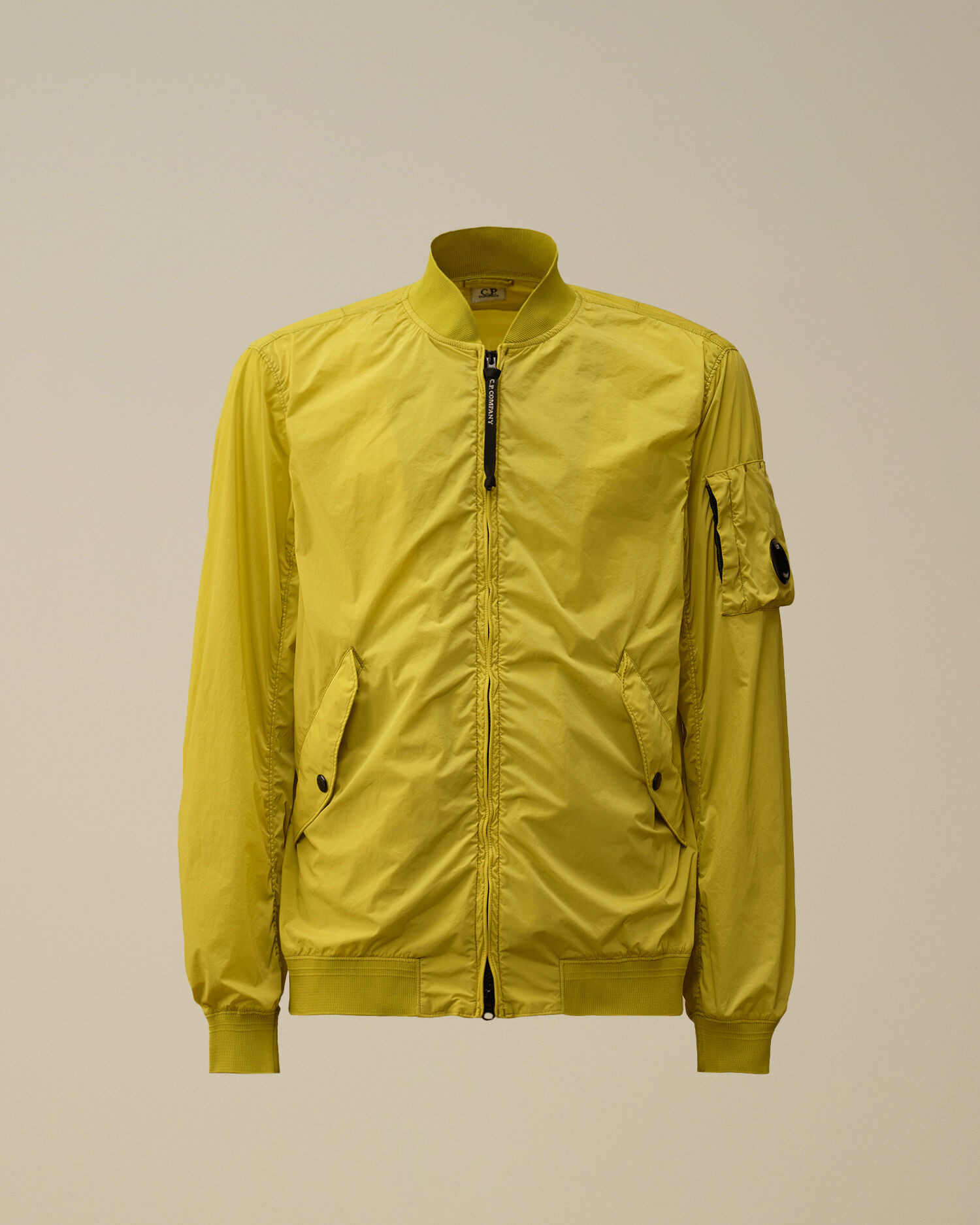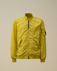 Bomber jacket crafted in Nycra-R, composed in ECONYL® 100% regenerated stretch multifilament, featuring Lens detail. Global Recycled Standard certified (GRS). Garment dyed anti-drop treated. Regular fit. - Ribbed V-neck - Two-way full zip fastening - Front patch flap snap pockets - Lens detail - Ribbed cuffs and hem - Garment dyed - Regular fit CARE & COMPOSITION Care - Wash max 30°C - Mild process - Do not bleach - Do not tumble dry - Ironing maximum temperature 110°C - without steam - Do not dry clean - Line dry in the shade - Wash separately - Wash with similar colours - Wash inside out - Remove detachable accessories before washing Composition - External fabric: 92% Polyamide / Nylon, 8% Elastane / Spandex SIZE & FITTING - Fits true to size, take your normal size - Model is 186 cm-6' 1" / 98-103 cm chest and is wearing a size L PRODUCT PASSPORT PRODUCT - Weaving: Italy - Dyeing: Italy - Confection: Bulgaria - Product contains at least 65% of recycled material - Releases plastic microfibers into the environment during washing PACKAGING - Minimum percentage of recycled materials 70%