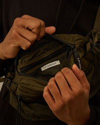Crossbody pack crafted in Nylon B, a military-inspired satin multi-filament nylon. The bag features an adjustable strap with a buckle, a carry handle, and external zip pockets. Inside, it includes a zip pocket with a logo detail. Finished with C.P. Company’s iconic Lens. Garment dyed and anti-drop treated. - Adjustable strap and buckle - Carry handle - External zip pockets - Lens detail - Inner zip pocket with logo detail - Garment dyed CARE & COMPOSITION Care - Wash max 30°C - Mild process - Do not bleach - Do not tumble dry - Do not iron - Do not dry clean - Line dry - Wash separately - Remove detachable accessories before washing Composition - External fabric: 100% Polyamide / Nylon - Lining: 100% Polyester - Secondary fabric: 100% Polyester PRODUCT PASSPORT PRODUCT - Weaving: Korea - Dyeing: China - Confection: China - Releases plastic microfibers into the environment during washing PACKAGING - Minimum percentage of recycled materials 70%