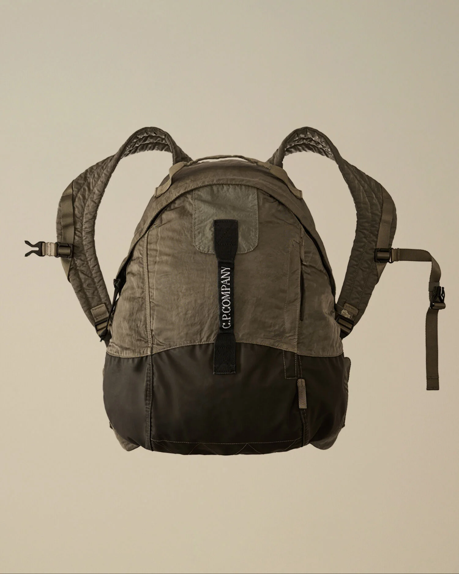 Rounded backpack crafted in Nylon B, a military-inspired satin multi-filament nylon. The backpack features adjustable straps with buckles, padded shoulder straps, a carry handle, and zip pockets. Inside, it includes a snap pocket with a logo detail and an embroidered logo detail on the exterior. Garment dyed and anti-drop treated. - Adjustable strap and buckle - Padded shoulder straps - Carry handle - Zip pockets - Embroidered logo detail - Inner snap pocket with logo detail - Garment dyed CARE & COMPOSITION Care - Wash max 30°C - Mild process - Do not bleach - Do not tumble dry - Do not iron - Do not dry clean - Line dry - Wash separately Composition - External fabric: 100% Polyamide / Nylon - Lining: 100% Polyester - Secondary fabric: 100% Polyamide / Nylon - Third fabric: 100% Elastodiene PRODUCT PASSPORT PRODUCT - Weaving: Korea - Dyeing: China - Confection: China - Releases plastic microfibers into the environment during washing PACKAGING - Minimum percentage of recycled materials 70%