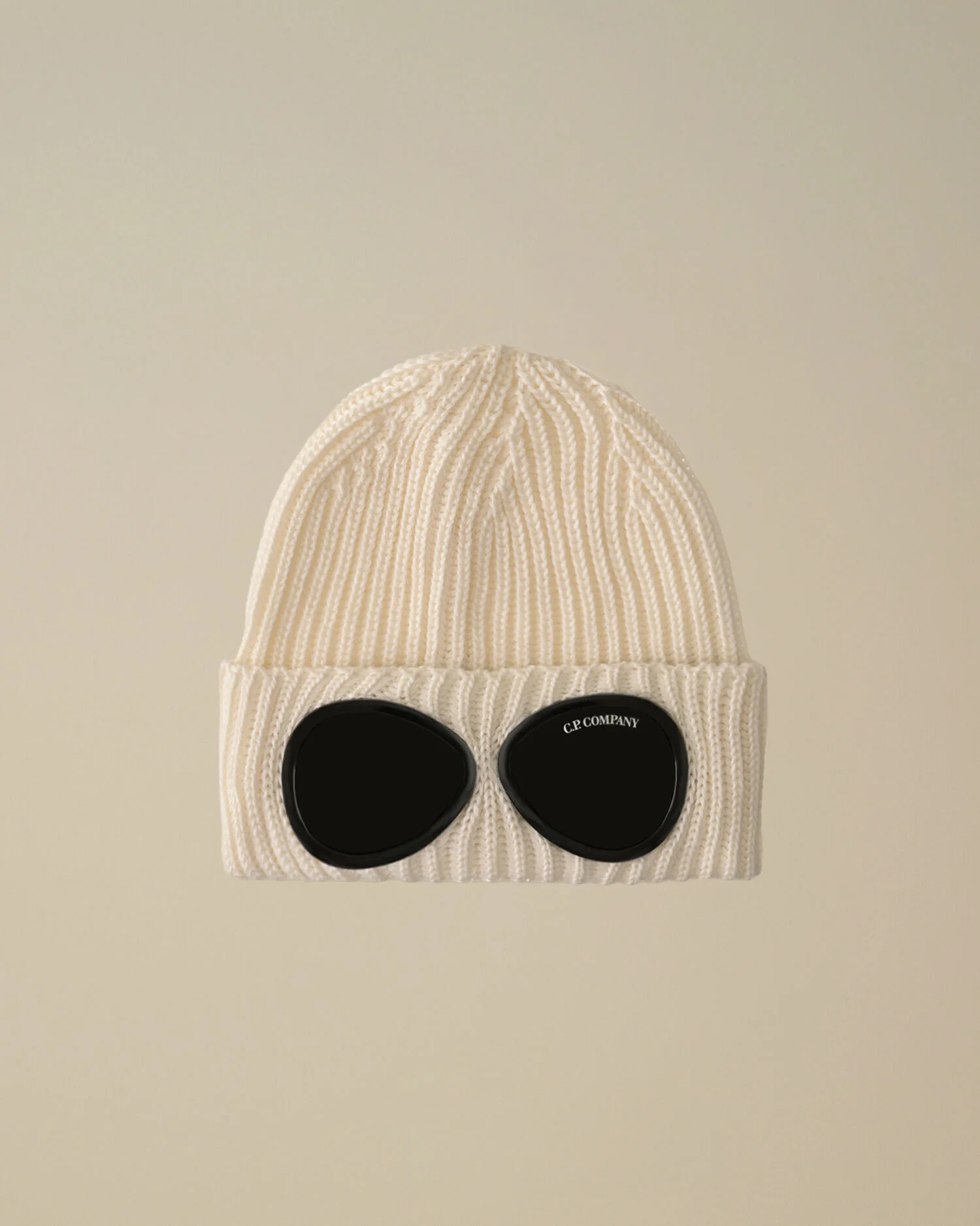 Beanie crafted in Extrafine Merino Wool, offering softness and warmth. The beanie features a ribbed knit, a turn-up brim, and C.P. Company’s iconic Goggle lenses. - Turn-up brim - Ribbed knit - Goggle Lenses CARE & COMPOSITION Care - Hand wash - Do not bleach - Do not tumble dry - Ironing maximum temperature 110°C - without steam - Dry cleaning in tetrachloroethene - mild process - Dry flat - Wash separately - Wash inside out - Do not soak - Remove detachable accessories before washing - Do not expose the garment to direct sunlight or artificial light Composition - External fabric: 100% Wool PRODUCT PASSPORT PRODUCT - Weaving: Italy - Dyeing: China - Confection: Italy PACKAGING - Minimum percentage of recycled materials 70%