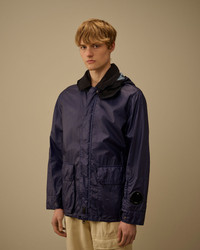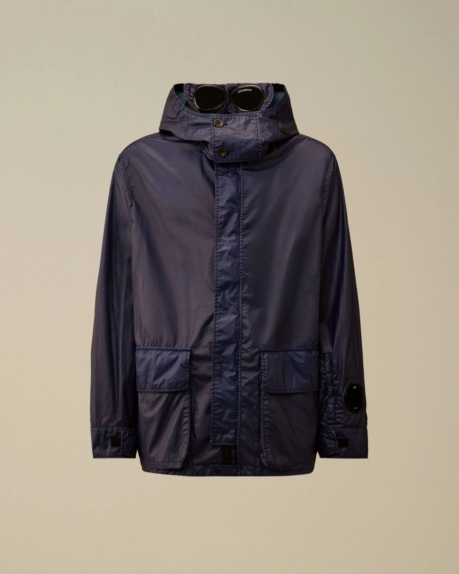Goggle jacket crafted from Opal-C Mixed, an opalescent Panama-type layer with a transfer film on a cotton base, mixed with Flatt Nylon inserts. The model features an adjustable and detachable Goggle hood, a collar with a face guard, and a hidden two-way full zip fastening with a flap and snap-button closure. Completing the design are front flap pockets, a hidden zip pocket with the iconic C.P. Company Lens on the left wrist, adjustable Velcro cuffs, and a drawstring waist for a custom fit. Finished with a hem tab and snap closure. Double garment dyed with anti-drop treated. Regular fit. - Adjustable and detachable Goggle hood - Collar with face guard - Hidden two-way full zip fastening with flap snap closure - Front flap snap pockets - Lens on left wrist with a hidden zip pocket - Adjustable velcro cuffs - Adjustable drawstring waist - Hem snap tab - Inserts mixed in Flatt Nylon - Double garment dyed - Regular fit CARE & COMPOSITION Care - Wash max 30°C - Mild process - Do not bleach - Do not tumble dry - Ironing maximum temperature 110°C - without steam - Do not dry clean - Line dry in the shade - Wash separately - Wash inside out - Iron with a cloth between - Do not soak - Remove detachable accessories before washing Composition - External fabric: 100% Cotton - Coating: 100% Polyurethanic resin - Secondary fabric: 100% Polyamide / Nylon SIZE & FITTING - Model is 186 cm-6' 1" and is wearing a size L - Fit: Regular PRODUCT PASSPORT PRODUCT - Weaving: Italy - Dyeing: Italy - Confection: Bulgaria PACKAGING - Minimum percentage of recycled materials 70%