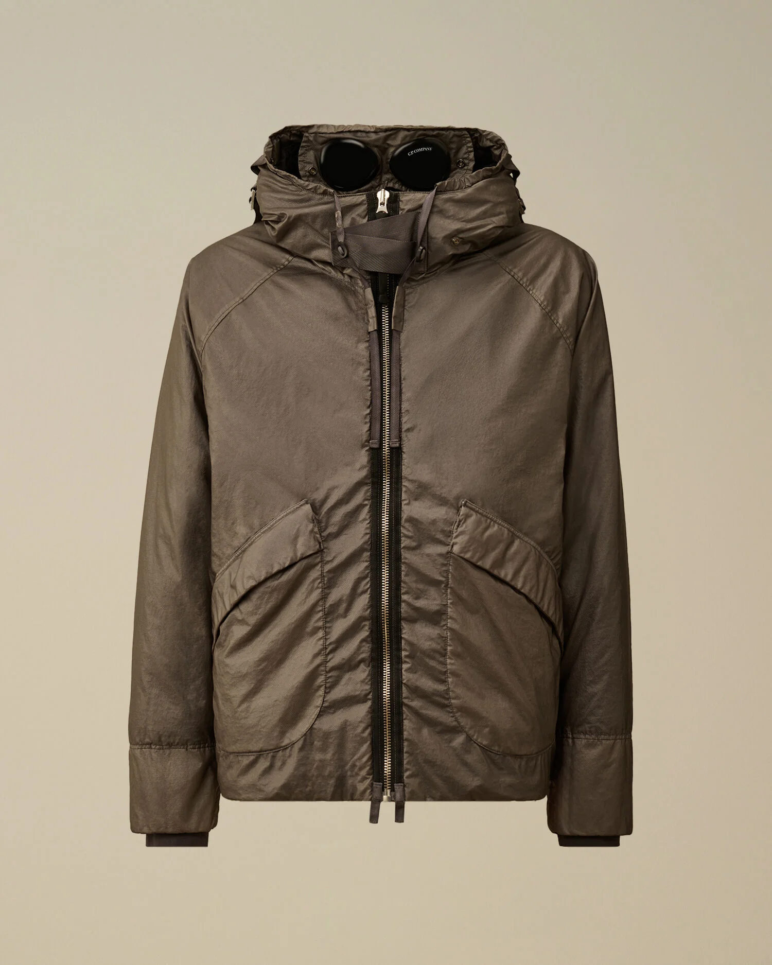 Goggle down jacket crafted in Opal, a lightweight multifilament nylon coated with a Panama texture transparent membrane. The jacket features C.P. Company’s iconic Goggle hood with back straps, face flap snap placket, and full zip fastening. Complete with side flap snap pockets, inner elasticated cuffs, and an adjustable drawstring hem. Garment dyed and anti-drop treated. Regular fit. - Adjustable Goggle hood with back straps - Face flap snap placket - Full zip fastening - Side flap snap pockets - Inner elasticated cuffs - Adjustable drawstring hem - Garment dyed - Regular fit CARE & COMPOSITION Care - Wash max 30°C - Mild process - Do not bleach - Do not tumble dry - Do not iron - Do not dry clean - Line dry - Wash separately - Reshape when damp - Remove detachable accessories before washing Composition - External fabric: 100% Polyamide / Nylon - Lining: 100% Polyamide / Nylon - Coating: 100% Polyurethanic resin - Padding (Feather): [202gr. - 90% ] 90% Grey duck down, 10% Grey Duck feather SIZE & FITTING - Fits true to size, take your normal size - Model is 186 cm-6' 1" / 98-103 cm chest and is wearing a size L PRODUCT PASSPORT PRODUCT - Weaving: Italy - Dyeing: Italy - Confection: Bulgaria - Product contains at least 20% of recycled material - Releases plastic microfibers into the environment during washing PACKAGING - Minimum percentage of recycled materials 70%