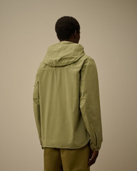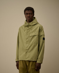 Hooded overshirt crafted in Gabardine made from 100% organic cotton. Certified according to the Global Organic Textile Standard (GOTS). The overshirt features C.P. Company’s iconic Lens, hidden two-way full zip fastening, and chest snap pocket. Garment dyed. Regular fit. - Adjustable hood with snap placket - Hidden two-way full zip fastening with button closure - Chest flap snap pocket - Lens detail - Adjustable button cuffs - Garment dyed - Regular fit CARE & COMPOSITION Care - Wash max 30°C - Do not bleach - Do not tumble dry - Ironing maximum temperature 110°C - without steam - Do not dry clean - Line dry in the shade - Wash separately - Do not soak - Remove detachable accessories before washing - Do not expose the garment to direct sunlight or artificial light Composition - External fabric: 100% Cotton SIZE & FITTING - Fits true to size, take your normal size - Model is 186 cm-6' 1" / 98-103 cm chest and is wearing a size L PRODUCT PASSPORT PRODUCT - Weaving: Turkiye - Dyeing: Tunisia - Confection: Tunisia PACKAGING - Minimum percentage of recycled materials 70%