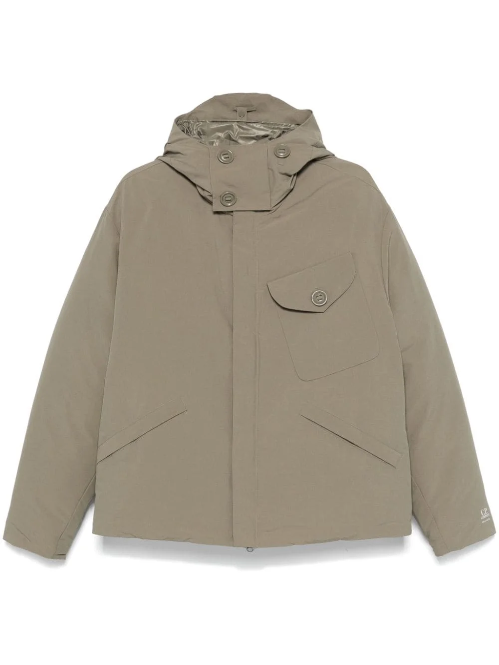 padded jacket Highlights - Khaki - Duck down - Padded design - Front press-stud and zip fastening - Layered drawstring hood - Drop shoulder - Long sleeves - Button-fastening chest pocket - Two press-stud fastening side pockets - Quilted lining - Drawstring hem Imported Composition Lining: Cotton 100%, Polyamide 100%, Duck Down 90%, Feather 10% Outer: Polyester 100% SIZE & FIT FittingInformation Designed for a regular fit, allowing for a comfortably loose fit throughout the body The internal drawstring at the hem allows for fitted preferences Made from a padded non-stretch fabric, giving it no natural elasticity