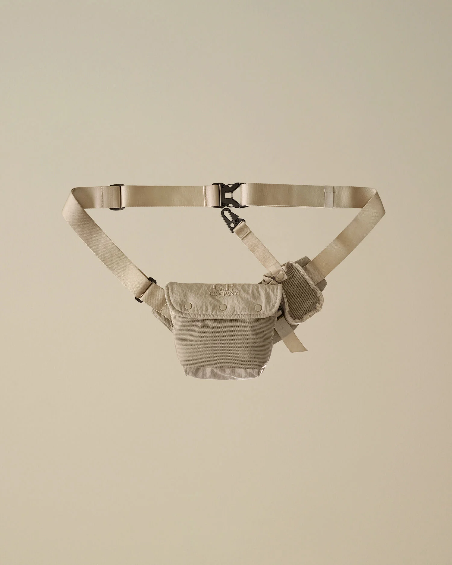 Waistbag crafted from Panama-R, a textured Oxford fabric made with recycled nylon yarns, mixed with inserts in Plain Paper Touch, a lightweight nylon canvas. The model features an adjustable buckle and hook closure, a main flap with snap fastening and embroidered logo, a front zip pocket, and an inner zip compartment. Garment dyed to achieve unique colour depth and tonal variations that evolve with time and wear. - Adjustable buckle closure and hook - Main flap snap closure with embroidered logo - External and inner zip pocket - Mixed inserts in Plain Paper Touch - Garment dyed CARE & COMPOSITION Care - Wash max 30°C - Mild process - Do not bleach - Do not tumble dry - Do not iron - Do not dry clean - Line dry - Wash separately Composition - External fabric: 100% Polyamide / Nylon - Lining: 100% Polyester - Secondary fabric: 100% Polyamide / Nylon - Secondary lining: 100% Polyester - Third fabric: 87% Polyester, 13% Elastane / Spandex PRODUCT PASSPORT PRODUCT - Weaving: Korea - Dyeing: China - Confection: China - Product contains at least 35% of recycled material - Releases plastic microfibers into the environment during washing PACKAGING - Minimum percentage of recycled materials 70%