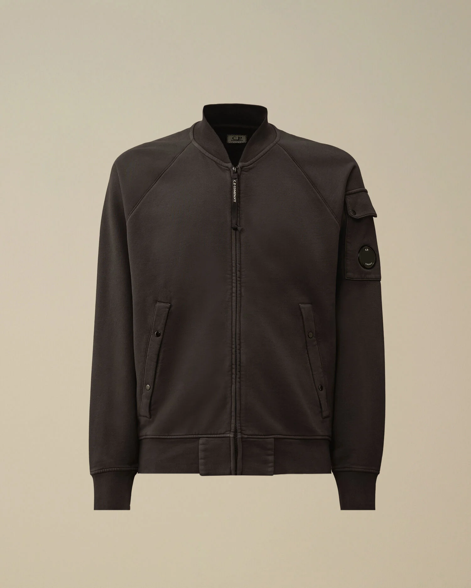 Full zip bomber sweatshirt crafted in brushed and emerized diagonal-weave gauzed fleece. The soft fabric ensures comfort and ease of movement. The sweatshirt features a ribbed neck and C.P. Company’s iconic Lens. Complete with a side snap pocket, ribbed cuffs and hem. Garment dyed. Regular fit. - Ribbed neck - Full zip fastening - Lens detail - Side snap pocket - Ribbed cuffs and hem - Garment dyed - Regular fit CARE & COMPOSITION Care - Wash max 30°C - Do not bleach - Do not tumble dry - Ironing maximum temperature 150°C - Do not dry clean - Flat dry in the shade - Wash separately - Wash with similar colours - Wash inside out - Iron inside out - Do not iron decorations - Remove detachable accessories before washing - Do not expose the garment to direct sunlight or artificial light Composition - External fabric: 100% Cotton SIZE & FITTING - Fits true to size, take your normal size - Model is 186 cm-6' 1" / 98-103 cm chest and is wearing a size L PRODUCT PASSPORT PRODUCT - Weaving: Turkiye - Dyeing: Turkiye - Confection: Turkiye PACKAGING - Minimum percentage of recycled materials 70%