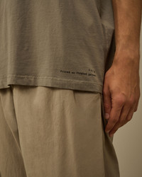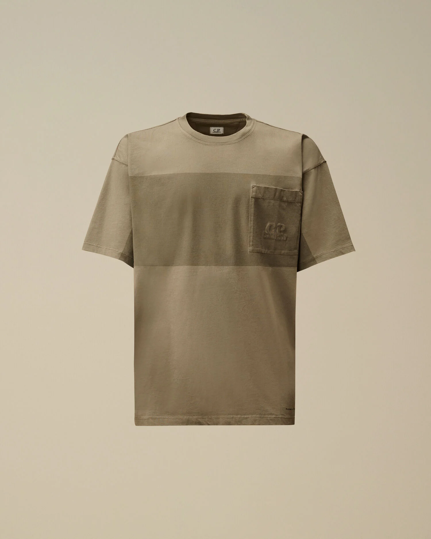 Short sleeve t-shirt crafted in 24/1 jersey, a medium-weight cotton fabric. The t-shirt features a ribbed crewneck and a chest open pocket with an embroidered logo detail. The unique print technique, applied to the finished garment, interacts with the hidden embroidery inside the pocket. As the print overlaps, the logo subtly emerges on the outer surface, creating a distinctive layered effect. Garment dyed. Made and printed in Italy. T-fit. - Ribbed crewneck - Chest open pocket with embroidered logo detail - Garment dyed - Screen-printed on the finished garment - Made and printed in Italy - T-fit CARE & COMPOSITION Care - Wash max 30°C - Mild process - Do not bleach - Do not tumble dry - Ironing maximum temperature 110°C - without steam - Do not dry clean - Flat dry in the shade - Wash separately - Wash with similar colours - Wash inside out - Iron inside out - Do not iron decorations - Do not expose to heat - Dry inside out Composition - External fabric: 100% Cotton SIZE & FITTING - Fits true to size, take your normal size - Model is 186 cm-6' 1" / 98-103 cm chest and is wearing a size L PRODUCT PASSPORT PRODUCT - Weaving: Turkiye - Dyeing: Italy - Confection: Italy PACKAGING - Minimum percentage of recycled materials 70%