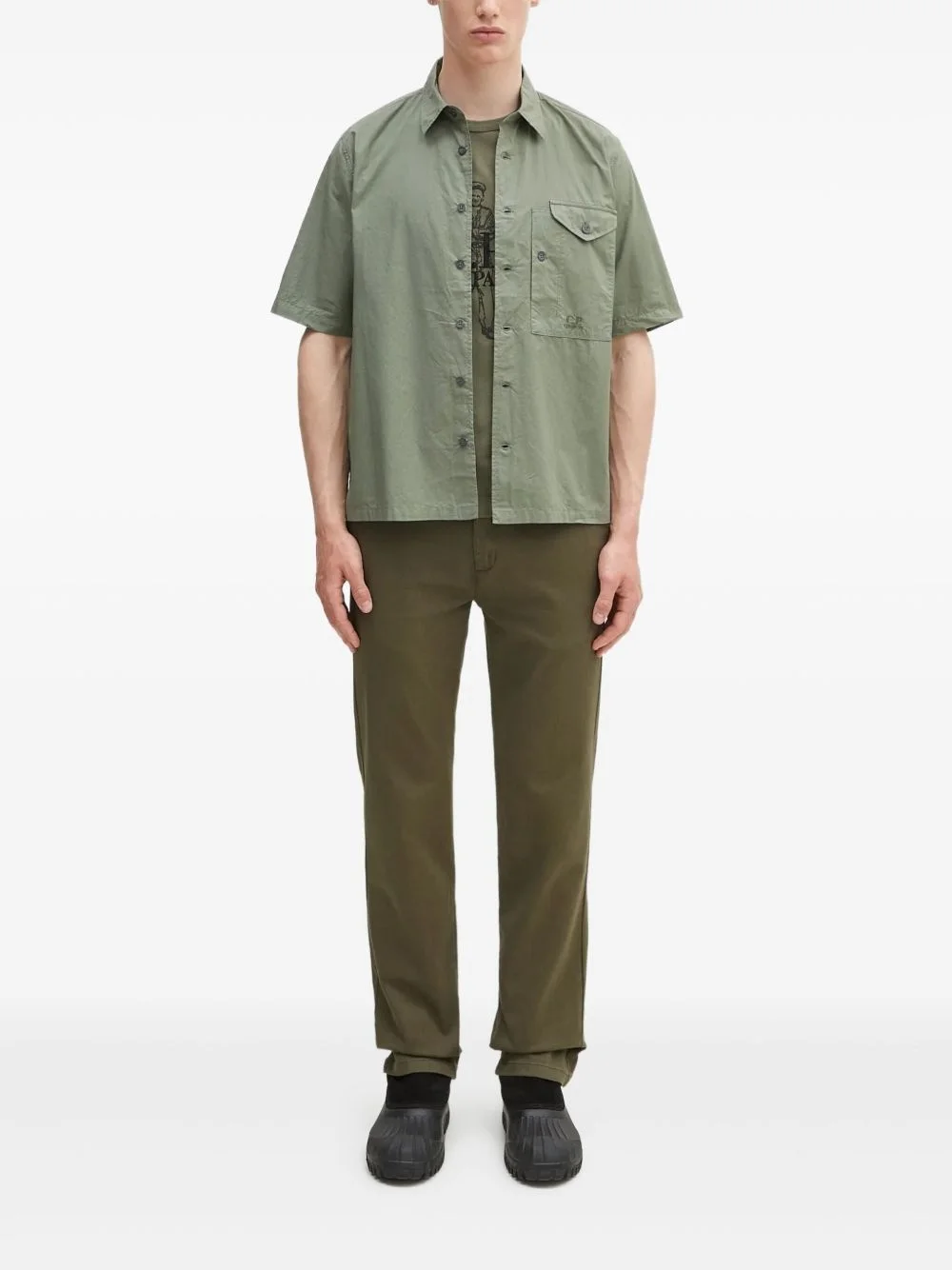 pocket short-sleeve shirt Highlights - Olive green - Short sleeves - Button fastening - Chest pocket - C.p. company suggests removing any detachable accessories before washing. Made in Italy Composition Cotton 100% Washing instructions Machine Wash