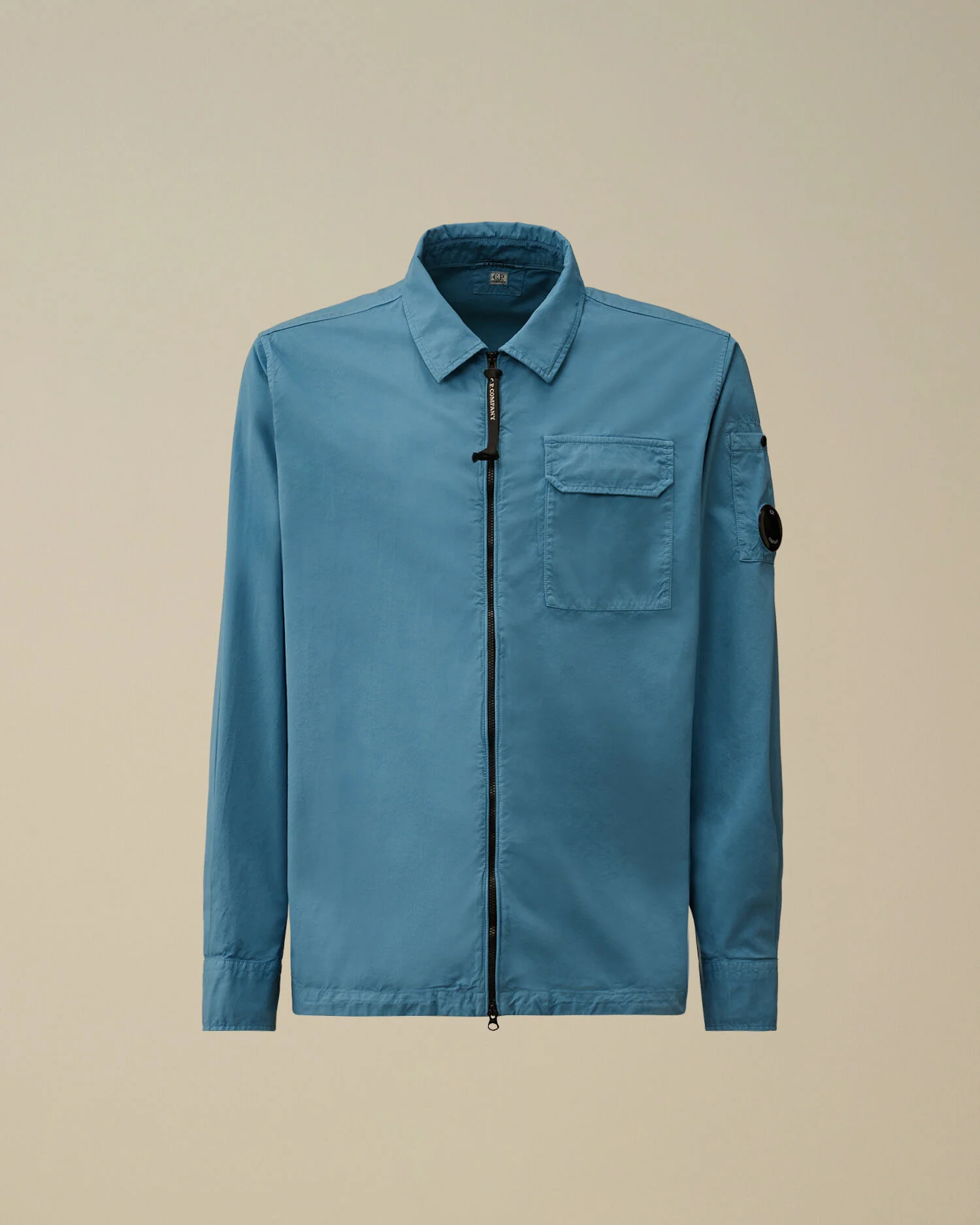 Overshirt crafted in Gabardine made from 100% organic cotton, certified according to the Global Organic Textile Standard (GOTS). The overshirt features C.P. Company’s iconic Lens, a two-way full zip fastening, and a chest flap snap pocket. Finished with adjustable button cuffs. Garment dyed. Regular fit. - Classic collar - Two-way full zip fastening - Chest flap snap pocket - Lens detail - Adjustable button cuffs - Garment dyed - Regular fit CARE & COMPOSITION Care - Wash max 30°C - Do not bleach - Do not tumble dry - Ironing maximum temperature 110°C - without steam - Do not dry clean - Line dry in the shade - Wash separately - Remove detachable accessories before washing - Do not expose the garment to direct sunlight or artificial light Composition - External fabric: 100% Cotton SIZE & FITTING - Fits true to size, take your normal size - Model is 186 cm-6' 1" / 98-103 cm chest and is wearing a size L PRODUCT PASSPORT PRODUCT - Weaving: Turkiye - Dyeing: Tunisia - Confection: Tunisia PACKAGING - Minimum percentage of recycled materials 70%