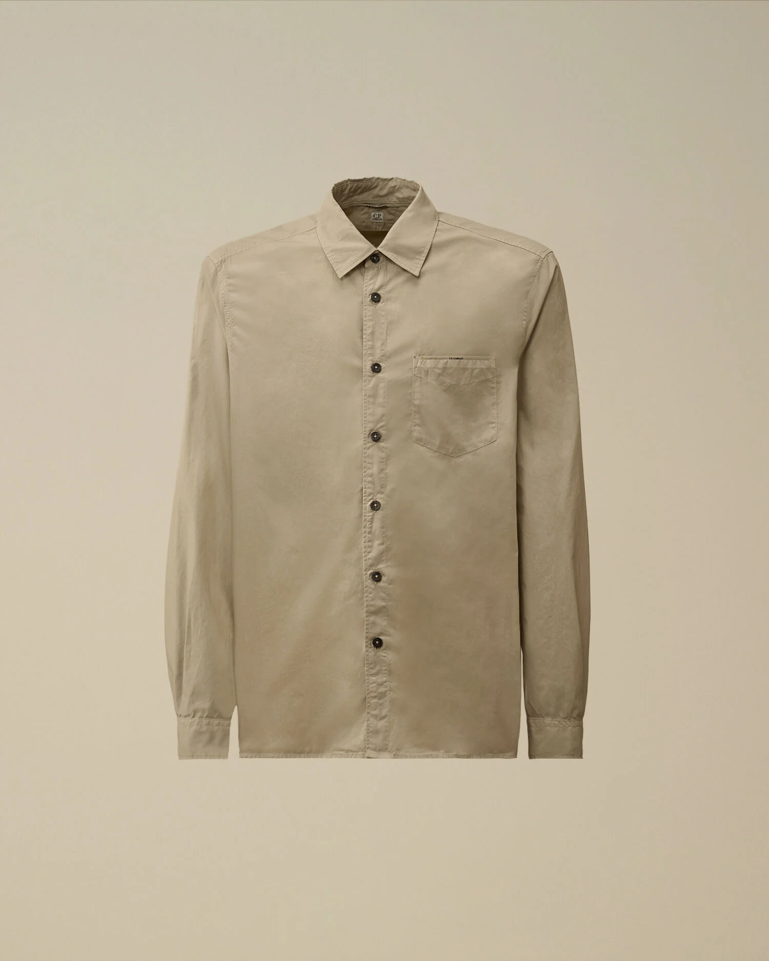 Longsleeve shirt crafted in cotton popeline, offering a lightweight and breathable texture. The shirt features a full button fastening, chest open pocket, and adjustable cuffs. Garment dyed. Regular fit. - Classic collar - Full button fastening - Chest open pocket - Adjustable button cuffs - Garment dyed - Regular fit CARE & COMPOSITION Care - Wash max 30°C - Mild process - Do not bleach - Do not tumble dry - Ironing maximum temperature 110°C - without steam - Do not dry clean - Line dry in the shade - Wash separately - Do not expose the garment to direct sunlight or artificial light Composition - External fabric: 100% Cotton SIZE & FITTING - Fits true to size, take your normal size - Model is 186 cm-6' 1" / 98-103 cm chest and is wearing a size L PRODUCT PASSPORT PRODUCT - Weaving: Italy - Dyeing: Tunisia - Confection: Tunisia PACKAGING - Minimum percentage of recycled materials 70%