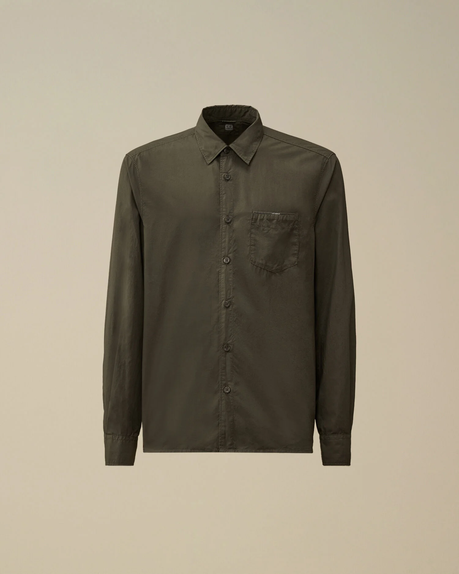 Longsleeve shirt crafted in cotton popeline, offering a lightweight and breathable texture. The shirt features a full button fastening, chest open pocket, and adjustable cuffs. Garment dyed. Regular fit. - Classic collar - Full button fastening - Chest open pocket - Adjustable button cuffs - Garment dyed - Regular fit CARE & COMPOSITION Care - Wash max 30°C - Mild process - Do not bleach - Do not tumble dry - Ironing maximum temperature 110°C - without steam - Do not dry clean - Line dry in the shade - Wash separately - Do not expose the garment to direct sunlight or artificial light Composition - External fabric: 100% Cotton SIZE & FITTING - Fits true to size, take your normal size - Model is 186 cm-6' 1" / 98-103 cm chest and is wearing a size L PRODUCT PASSPORT PRODUCT - Weaving: Italy - Dyeing: Tunisia - Confection: Tunisia PACKAGING - Minimum percentage of recycled materials 70%