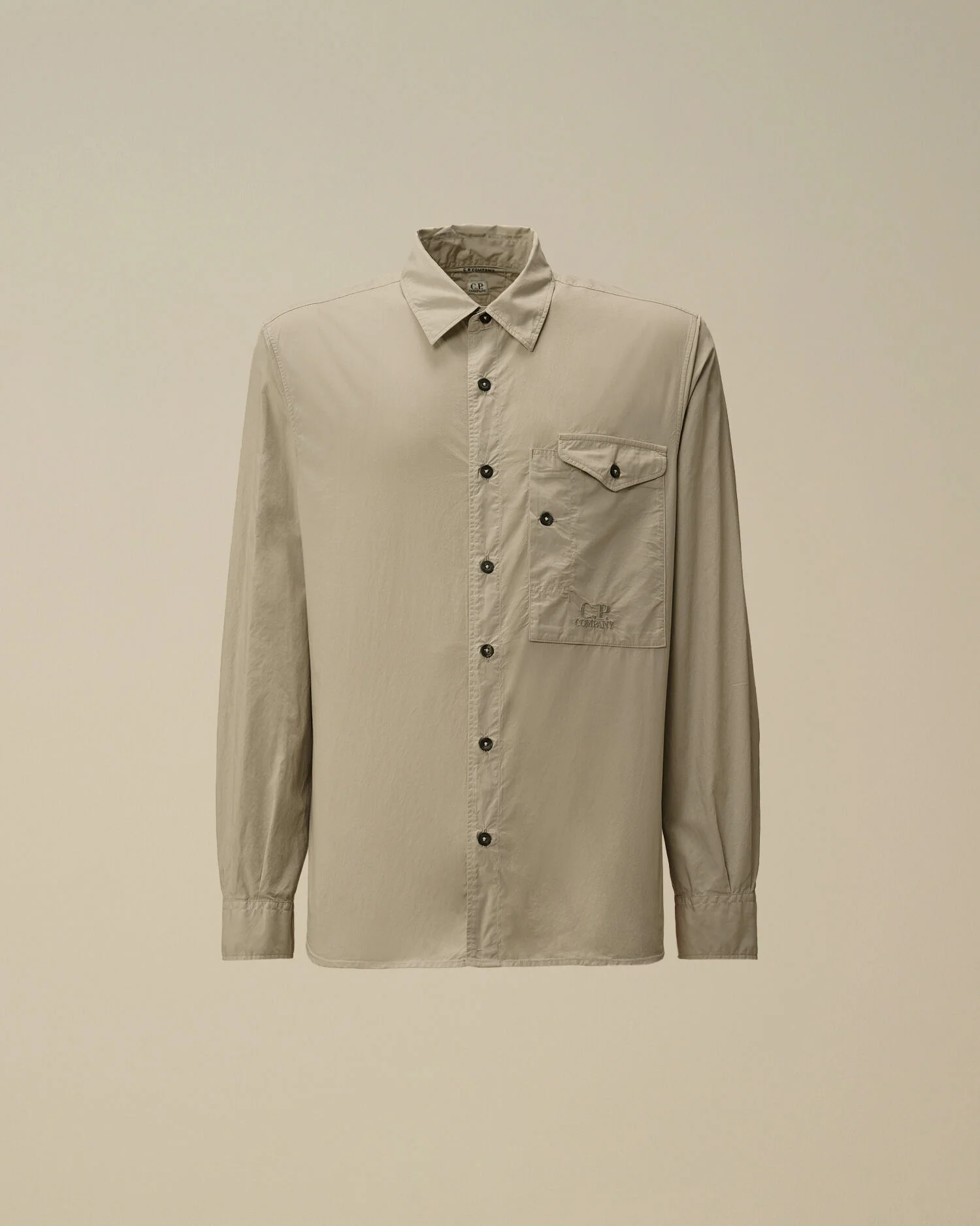 Longsleeve shirt crafted in cotton popeline, offering a lightweight and breathable texture. The shirt features full button fastening, a chest pocket with double button and embroidered logo detail, and adjustable button cuffs. Garment dyed. Regular fit. - Classic collar - Full button fastening - Chest pocket with double button and embroidered logo detail - Adjustable button cuffs - Garment dyed - Regular fit CARE & COMPOSITION Care - Wash max 30°C - Mild process - Do not bleach - Do not tumble dry - Ironing maximum temperature 110°C - without steam - Do not dry clean - Line dry in the shade - Wash separately - Iron inside out - Do not iron decorations - Do not expose the garment to direct sunlight or artificial light Composition - External fabric: 100% Cotton SIZE & FITTING - Fits true to size, take your normal size - Model is 186 cm-6' 1" / 98-103 cm chest and is wearing a size L PRODUCT PASSPORT PRODUCT - Weaving: Italy - Dyeing: Tunisia - Confection: Tunisia PACKAGING - Minimum percentage of recycled materials 70%