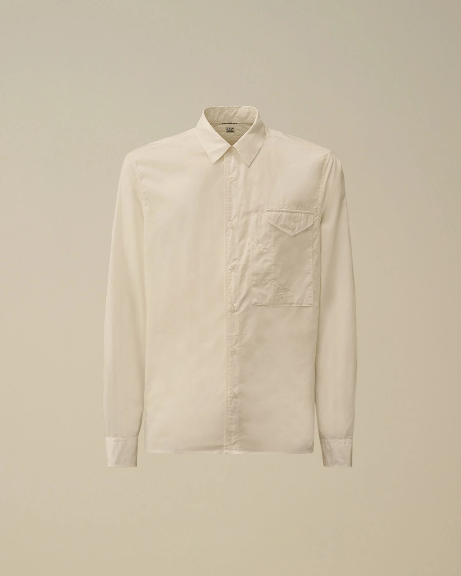 Longsleeve shirt crafted in cotton popeline, offering a lightweight and breathable texture. The shirt features full button fastening, a chest pocket with double button and embroidered logo detail, and adjustable button cuffs. Garment dyed. Regular fit. - Classic collar - Full button fastening - Chest pocket with double button and embroidered logo detail - Adjustable button cuffs - Garment dyed - Regular fit CARE & COMPOSITION Care - Wash max 30°C - Mild process - Do not bleach - Do not tumble dry - Ironing maximum temperature 110°C - without steam - Do not dry clean - Line dry in the shade - Wash separately - Iron inside out - Do not iron decorations - Do not expose the garment to direct sunlight or artificial light Composition - External fabric: 100% Cotton SIZE & FITTING - Fits true to size, take your normal size - Model is 186 cm-6' 1" / 98-103 cm chest and is wearing a size L PRODUCT PASSPORT PRODUCT - Weaving: Italy - Dyeing: Tunisia - Confection: Tunisia PACKAGING - Minimum percentage of recycled materials 70%
