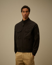 Bomber jacket crafted from Pro-Tek, a mechanical stretch polyester that combines the lightweight comfort of a sweatshirt with the protection of an outer layer. The model features a ribbed collar, a two-way full zip fastening, and chest patch flap button pockets. Completing the design are side zip pockets, the iconic C.P. Company Lens on the sleeve pocket, and ribbed cuffs and hem. Anti-drop treated. Regular fit. - Ribbed collar - Two-way full zip fastening - Lens detail - Chest patch flap button pockets - Side zip pockets - Ribbed cuffs and hem - Regular fit CARE & COMPOSITION Care - Wash max 30°C - Mild process - Do not bleach - Do not tumble dry - Ironing maximum temperature 110°C - without steam - Do not dry clean - Line dry - Wash inside out - Do not soak - Remove detachable accessories before washing Composition - External fabric: 100% Polyester - Secondary fabric: 89% Polyester, 11% Elastane / Spandex SIZE & FITTING - Model is 186 cm-6' 1" and is wearing a size L - Fit: Regular PRODUCT PASSPORT PRODUCT - Weaving: China - Dyeing: China - Confection: Myanmar - Releases plastic microfibers into the environment during washing PACKAGING - Minimum percentage of recycled materials 70%