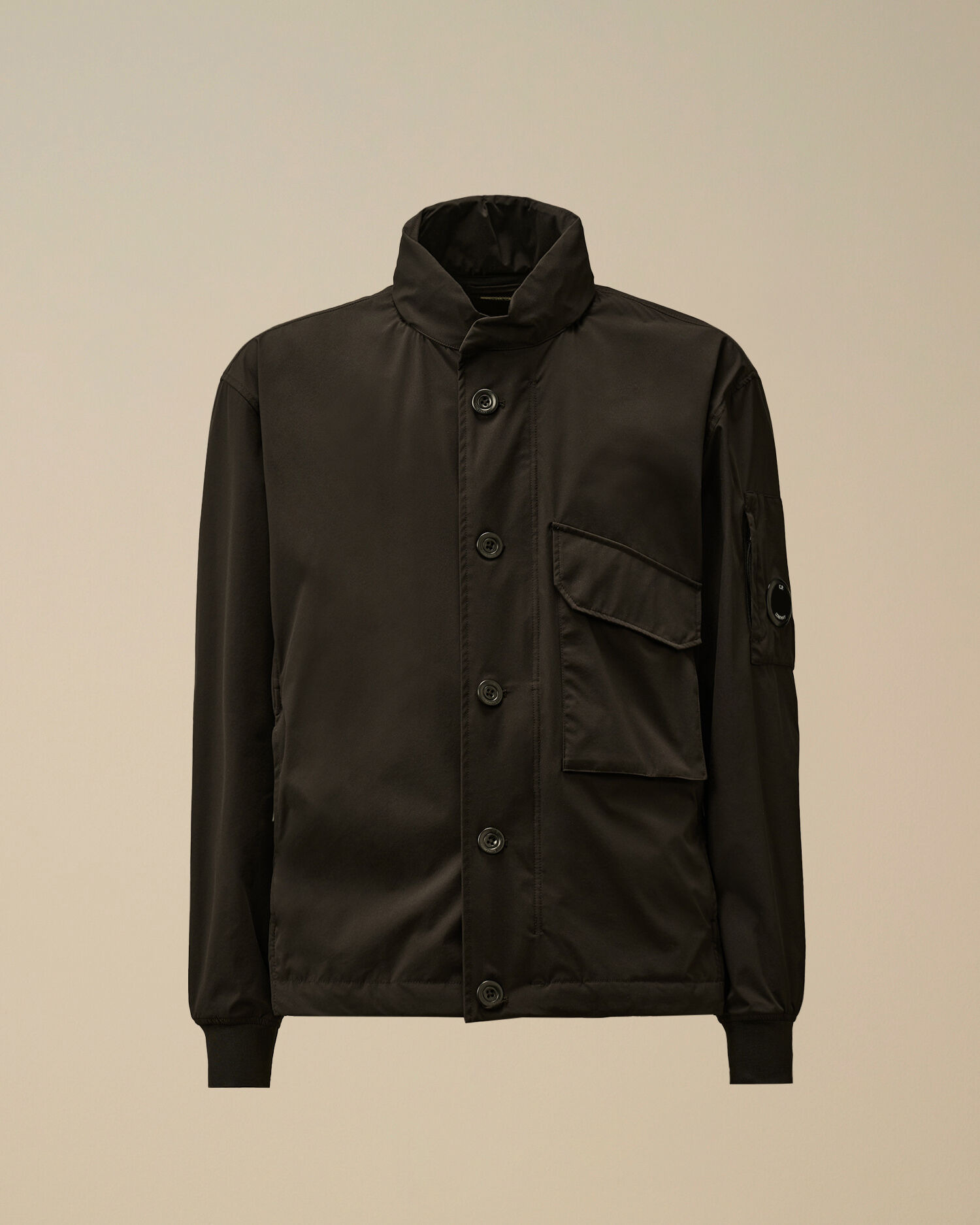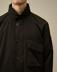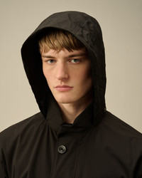 Hooded jacket crafted in Pro-Tek, a polyester mechanical stretch that combines the weight and comfort of a sweatshirt with the protection of an outer layer. Windproof and anti-drop treated. Lens detail. Regular fit. - Stand-up collar - Concealable adjustable hood - Full button fastening - Chest flap snap pocket - Side zip pockets - Lens detail - Elasticated cuffs - Adjustable drawstring hem - Regular fit CARE & COMPOSITION CARE - Wash max 30°C - Mild process - Do not bleach - Do not tumble dry - Ironing maximum temperature 110°C - without steam - Do not dry clean - Line dry - Wash separately - Wash inside out - Remove detachable accessories before washing COMPOSITION - External fabric: 100% Polyester SIZE & FITTING - Fits true to size, take your normal size - Model is 186 cm-6' 1" / 98-103 cm chest and is wearing a size L