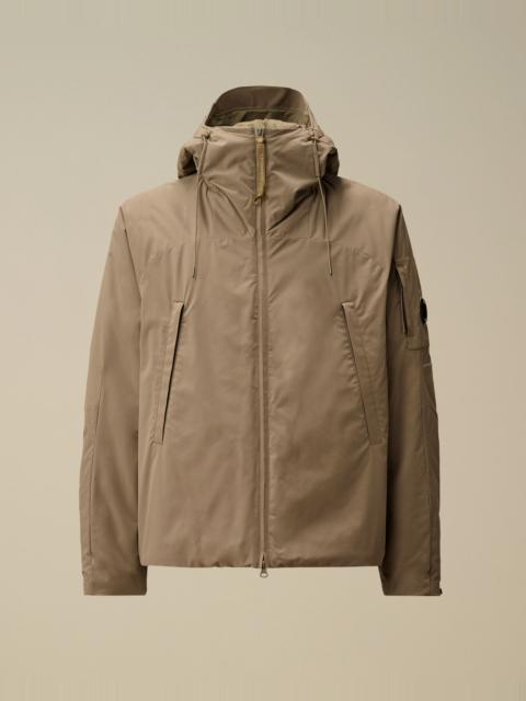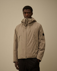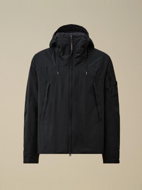 Hooded padded jacket crafted in Pro-Tek, a Polyester mechanical stretch that combines the weight and comfort of a sweatshirt with the protection of an outer layer. The jacket features C.P. Company’s iconic Lens, a two-way full zip fastening, and side zip pockets. Padded with Primaloft® Silver wadding, an insulation solution with high thermal and breathability properties. Anti-drop treated. Regular fit. - Adjustable hood - Two-way full zip fastening - Side zip pockets - Lens detail - Adjustable snap cuffs - Primaloft® Silver padding - Regular fit CARE & COMPOSITION Care - Wash max 30°C - Mild process - Do not bleach - Do not tumble dry - Ironing maximum temperature 110°C - without steam - Do not dry clean - Line dry - Wash inside out - Remove detachable accessories before washing Composition - External fabric: 100% Polyester - Lining: 100% Polyamide / Nylon - Padding (Fiber): 100% Polyester SIZE & FITTING - Fits true to size, take your normal size - Model is 186 cm-6' 1" / 98-103 cm chest and is wearing a size L PRODUCT PASSPORT PRODUCT - Weaving: China - Dyeing: China - Confection: Myanmar - Releases plastic microfibers into the environment during washing PACKAGING - Minimum percentage of recycled materials 70%