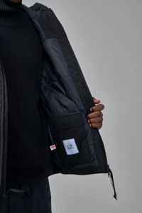 A down jacket featuring a sleek design with a high collar and integrated hood. This outerwear combines practicality with style, ideal for cold weather. Materials: 100% Polyester Color: black SKU: 152017 Brand style: 19CMOW006A110264A Size and Fit The model is 1.89m (6.2ft) and wears a size L. The item has a looser cut but is not necessarily oversized. It’s intended for a comfortable and easy wear.