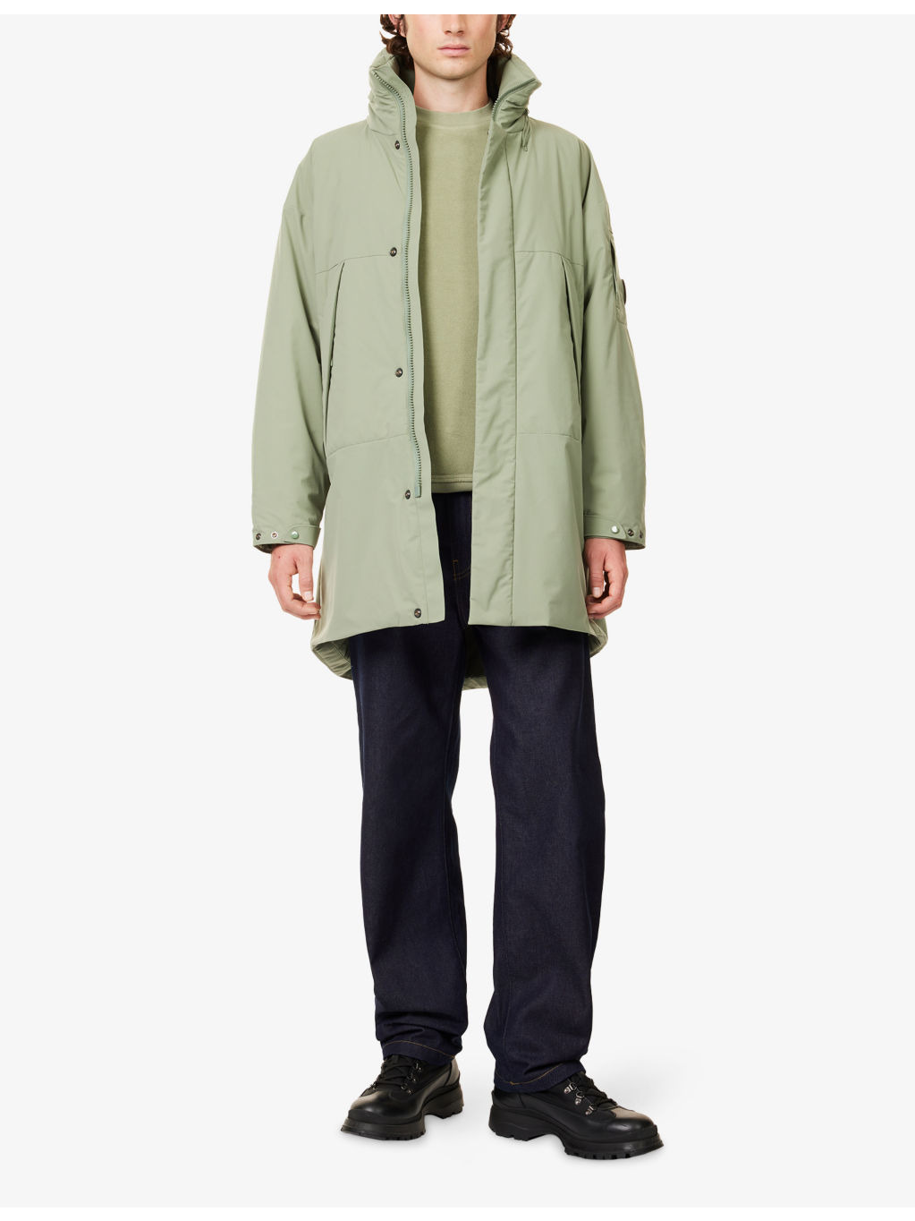 PRODUCT DETAILS - C.P. Company shell parka Coat - 100% polyester - Concealed press-stud and zip fastening at front - Funnel neck, concealable hood, long sleeves, adjustable cuffs, two concealed zipped pockets at front, lightly padded, fully lined, straight hem - Machine wash at 30°C - Size : length 35.4in / 90cm, chest 48.8in / 124cm - Model is 6ft 2in/1.88m and wears a size medium - Lightweight, non-stretch Ref: R04486690