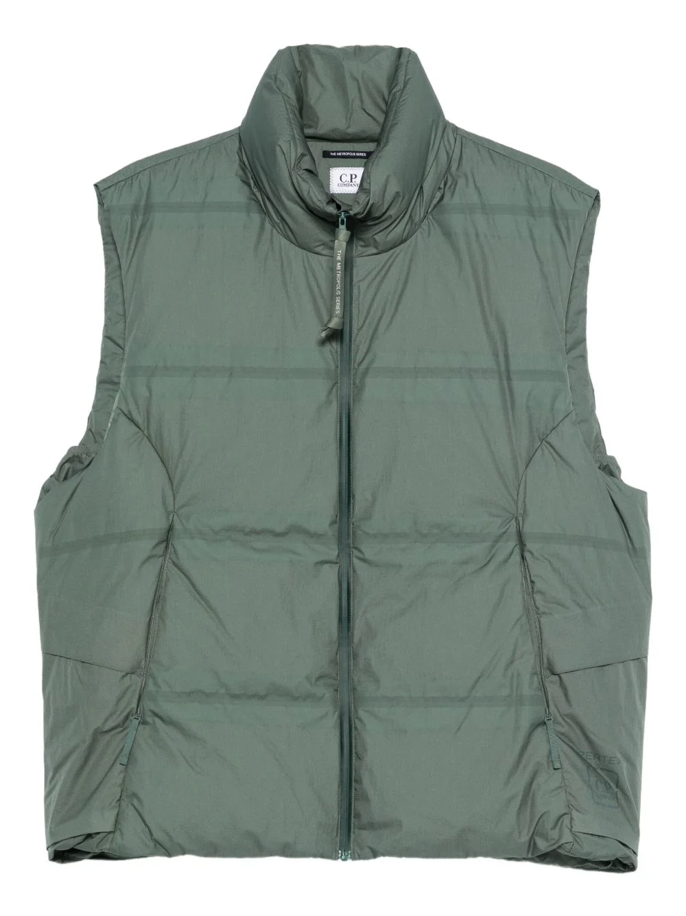quilted high-neck vest Highlights - Green - Quilted design - Stand collar - Zip fastening - Sleeveless - Side pockets - C.p. company suggests removing any detachable accessories before washing. Imported Composition Outer: Polyurethane Resin 100%, Polyamide 100% Lining: Polyamide 100%, Duck Down 90%, Feather 10% SIZE & FIT Model measurements Height 6 ft 1 in(1.85 m) Bust/Chest 35.82 in(91 cm) Hips 37.79 in(96 cm) Waist 29.13 in(74 cm) Washing instructions Machine Wash