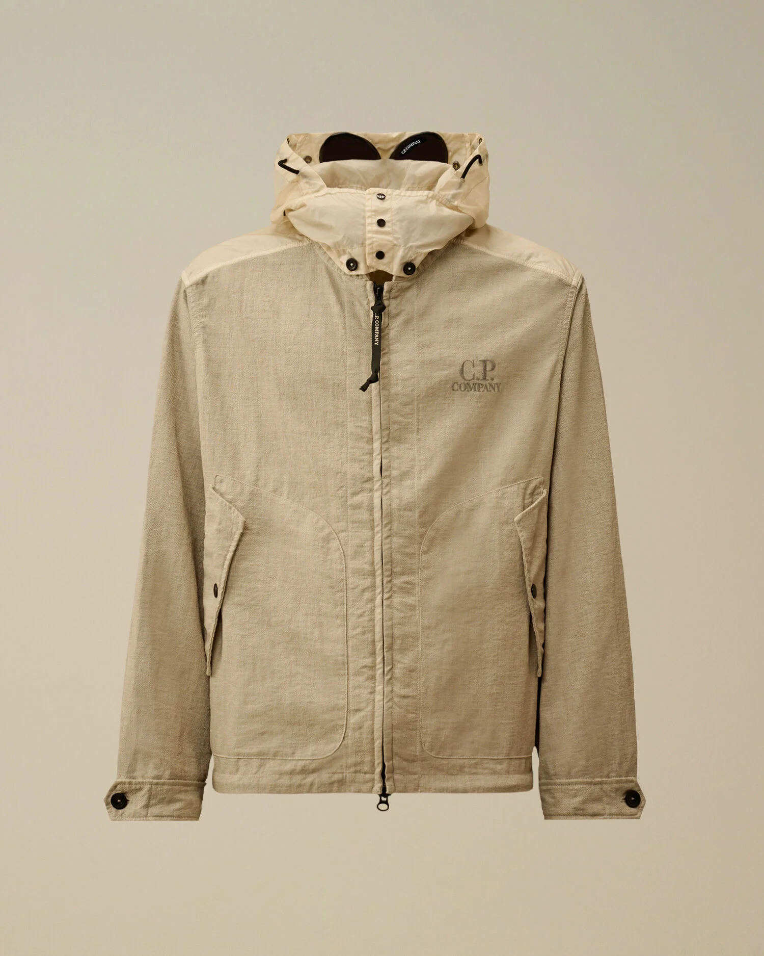 Goggle jacket crafted from Rafia-R, a recycled nylon rafia fabric made with irregular flat filaments and laminated on the reverse side. The model features an adjustable and detachable Goggle hood in contrasting Opal and a back ventilation insert in the same material. Completing the design are a two-way full zip fastening, an embroidered logo on the chest, side flap pockets with snap-button closures, adjustable button cuffs, and a drawstring hem for a custom fit. Garment dyed to achieve unique colour depth and tonal variations that evolve with time and wear. Regular fit. - Adjustable and detachable Goggle hood in Opal - Back ventilation insert in Opal - Two-way full zip fastening - Chest embroidered logo - Side flap snap pockets - Adjustable button cuffs - Adjustable drawstring hem - Garment dyed - Regular fit CARE & COMPOSITION Care - Wash max 30°C - Mild process - Do not bleach - Do not tumble dry - Ironing maximum temperature 110°C - without steam - Do not dry clean - Line dry in the shade - Wash separately - Wash inside out - Do not soak - Remove detachable accessories before washing - Do not expose the garment to direct sunlight or artificial light Composition - External fabric: 85% Polyamide / Nylon, 15% Polyethylene - Coating: 100% Polyurethanic resin - Secondary fabric: 100% Polyamide / Nylon SIZE & FITTING - Model is 186 cm-6' 1" and is wearing a size L - Fit: Regular PRODUCT PASSPORT PRODUCT - Weaving: Japan - Dyeing: Italy - Confection: Romania - Product contains at least 40% of recycled material - Releases plastic microfibers into the environment during washing PACKAGING - Minimum percentage of recycled materials 70%
