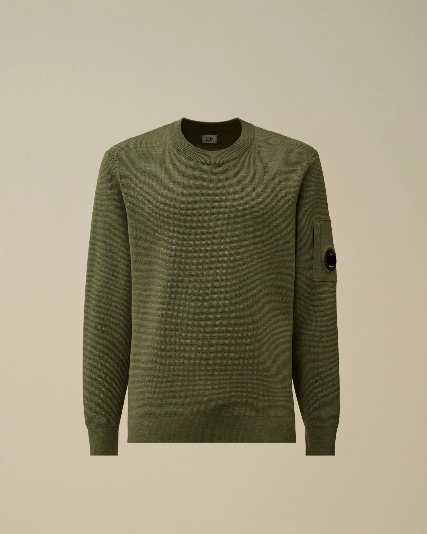 Crewneck sweater crafted in Re-Wool, an Extrafine Merino Wool blend certified by the Responsible Wool Standard (RWS) and combined with recycled Polyester certified by the Global Recycled Standard (GRS). The knit features C.P. Company’s iconic Lens, ribbed cuffs and hem. Gauge 12. Regular fit. - Ribbed crewneck - Lens detail - Ribbed cuffs and hem - 12 Gauge knit - Regular fit CARE & COMPOSITION Care - Wash max 30°C - Very mild process - Do not bleach - Do not tumble dry - Ironing maximum temperature 110°C - without steam - Dry cleaning in tetrachloroethene - mild process - Flat drip dry - Remove detachable accessories before washing Composition - External fabric: 55% Virgin wool, 45% Polyester SIZE & FITTING - Fits true to size, take your normal size - Model is 186 cm-6' 1" / 98-103 cm chest and is wearing a size L PRODUCT PASSPORT PRODUCT - Weaving: Bulgaria - Dyeing: China - Confection: Bulgaria - Product contains at least 40% of recycled material PACKAGING - Minimum percentage of recycled materials 70%
