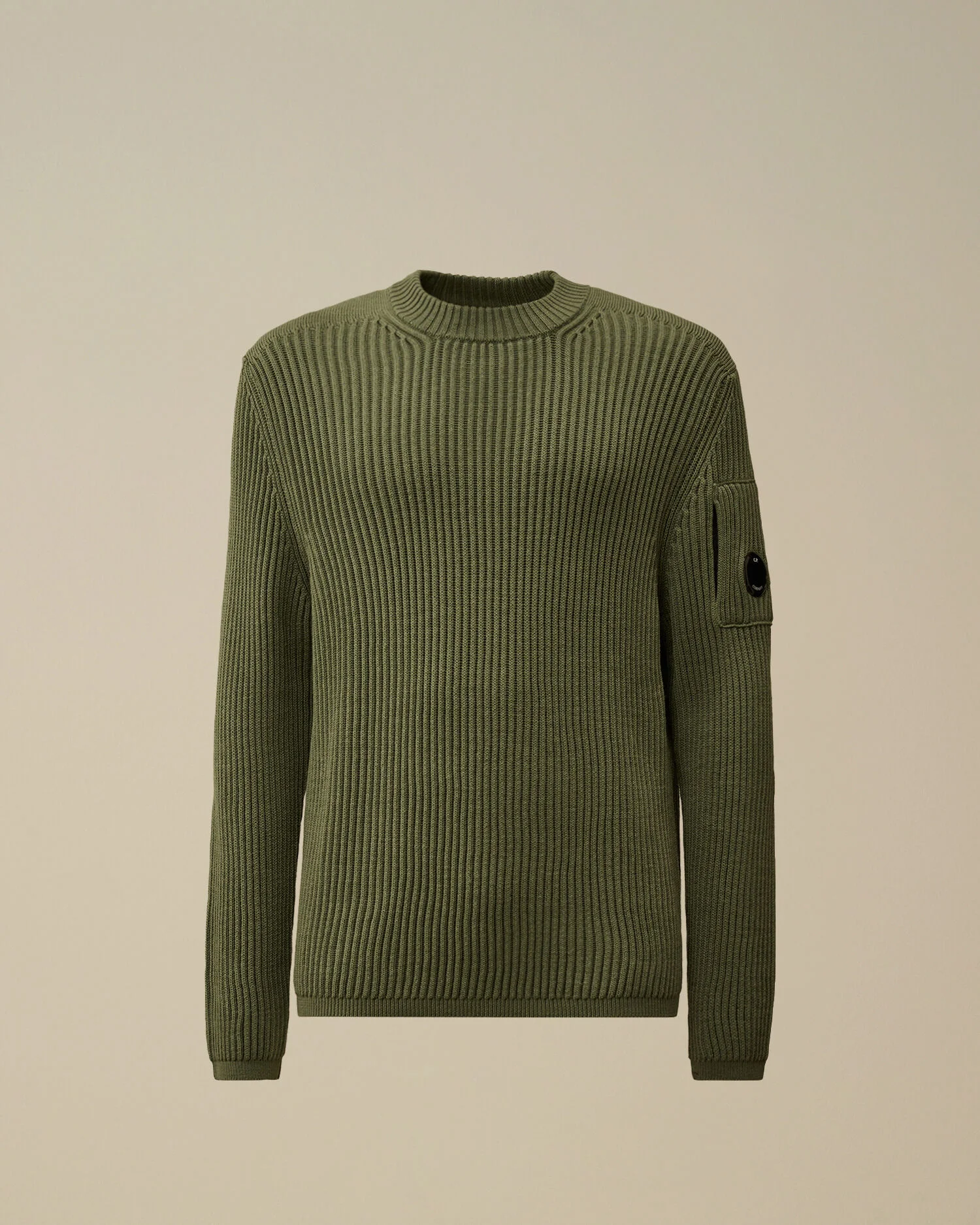 Crewneck sweater crafted in Re-Wool, an Extrafine Merino Wool blend certified by the Responsible Wool Standard (RWS) and combined with recycled Polyester certified by the Global Recycled Standard (GRS). The knit features C.P. Company’s iconic Lens. Gauge 7. Regular fit. - Ribbed crewneck - Lens detail - 7 Gauge knit - Regular fit CARE & COMPOSITION Care - Wash max 30°C - Very mild process - Do not bleach - Do not tumble dry - Ironing maximum temperature 110°C - without steam - Dry cleaning in tetrachloroethene - mild process - Flat drip dry - Remove detachable accessories before washing Composition - External fabric: 55% Virgin wool, 45% Polyester SIZE & FITTING - Fits true to size, take your normal size - Model is 186 cm-6' 1" / 98-103 cm chest and is wearing a size L PRODUCT PASSPORT PRODUCT - Weaving: Bulgaria - Dyeing: China - Confection: Bulgaria - Product contains at least 40% of recycled material PACKAGING - Minimum percentage of recycled materials 70%