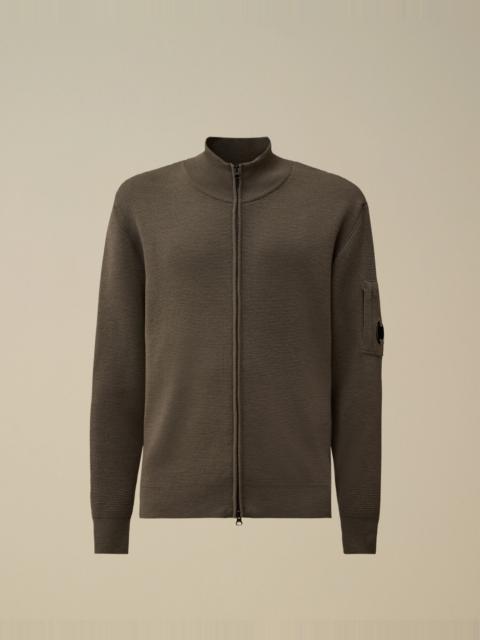 Full zip cardigan crafted in Re-Wool, an Extrafine Merino Wool blend certified by the Responsible Wool Standard (RWS) and combined with recycled Polyester certified by the Global Recycled Standard (GRS). The knit features a ribbed collar, and C.P. Company’s iconic Lens. Finished with ribbed cuffs and hem. Gauge 12. Regular fit. - Ribbed collar - Two-way full zip fastening - Lens detail - Ribbed cuffs and hem - 12 Gauge knit - Regular fit CARE & COMPOSITION Care - Wash max 30°C - Very mild process - Do not bleach - Do not tumble dry - Ironing maximum temperature 110°C - without steam - Dry cleaning in tetrachloroethene - mild process - Flat drip dry - Remove detachable accessories before washing Composition - External fabric: 55% Virgin wool, 45% Polyester SIZE & FITTING - Fits true to size, take your normal size - Model is 186 cm-6' 1" / 98-103 cm chest and is wearing a size L PRODUCT PASSPORT PRODUCT - Weaving: Bulgaria - Dyeing: China - Confection: Bulgaria - Product contains at least 40% of recycled material PACKAGING - Minimum percentage of recycled materials 70%