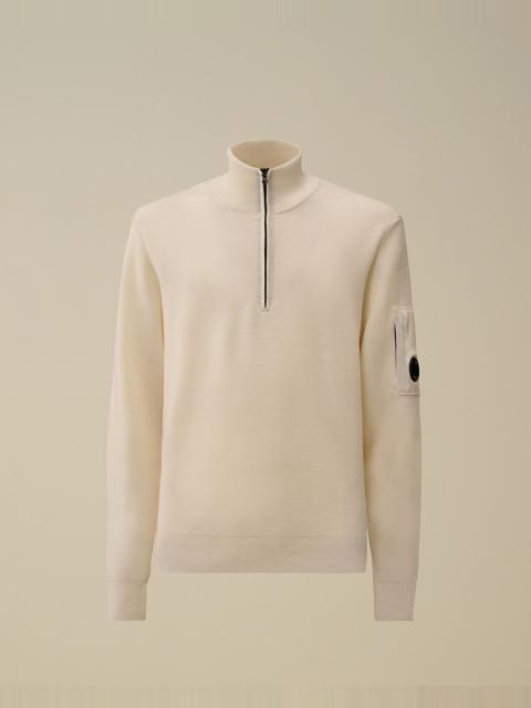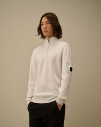 Half zip sweater crafted in Re-Wool, an Extrafine Merino Wool blend certified by the Responsible Wool Standard (RWS) and combined with recycled Polyester certified by the Global Recycled Standard (GRS). The knit features a ribbed collar and C.P. Company’s iconic Lens. Finished with ribbed cuffs and hem. Gauge 12. Regular fit. - Ribbed collar - Half zip fastening - Lens detail - Ribbed cuffs and hem - 12 Gauge knit - Regular fit CARE & COMPOSITION Care - Wash max 30°C - Very mild process - Do not bleach - Do not tumble dry - Ironing maximum temperature 110°C - without steam - Dry cleaning in tetrachloroethene - mild process - Flat drip dry - Remove detachable accessories before washing Composition - External fabric: 55% Virgin wool, 45% Polyester SIZE & FITTING - Fits true to size, take your normal size - Model is 186 cm-6' 1" / 98-103 cm chest and is wearing a size L PRODUCT PASSPORT PRODUCT - Weaving: Bulgaria - Dyeing: China - Confection: Bulgaria - Product contains at least 40% of recycled material PACKAGING - Minimum percentage of recycled materials 70%