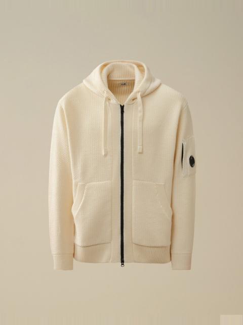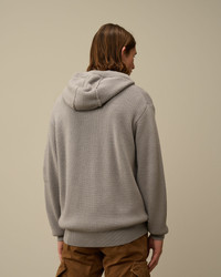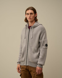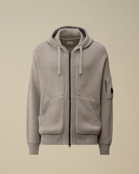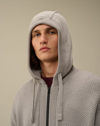 Hooded zipped knit crafted in extrafine merino wool RWS, combined with recycled polyester GRS. Gauge 7. - Adjustable hood - Two-way full zip fastening - Side pockets - Lens detail - Ribbed cuffs and hem - 7 Gauge knit - Regular fit CARE & COMPOSITION CARE - Wash max 30°C - Mild process - Do not bleach - Do not tumble dry - Ironing maximum temperature 110°C - without steam - Dry cleaning in tetrachloroethene - mild process - Flat drip dry in the shade - Remove detachable accessories before washing - Dry inside out COMPOSITION - External fabric: 55% Virgin wool, 45% Polyester SIZE & FITTING - Fits true to size, take your normal size - Model is 186 cm-6' 1" / 98-103 cm chest and is wearing a size L
