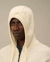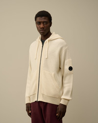 Hooded zipped knit crafted in extrafine merino wool RWS, combined with recycled polyester GRS. Gauge 7. - Adjustable hood - Two-way full zip fastening - Side pockets - Lens detail - Ribbed cuffs and hem - 7 Gauge knit - Regular fit CARE & COMPOSITION CARE - Wash max 30°C - Mild process - Do not bleach - Do not tumble dry - Ironing maximum temperature 110°C - without steam - Dry cleaning in tetrachloroethene - mild process - Flat drip dry in the shade - Remove detachable accessories before washing - Dry inside out COMPOSITION - External fabric: 55% Virgin wool, 45% Polyester SIZE & FITTING - Fits true to size, take your normal size - Model is 186 cm-6' 1" / 98-103 cm chest and is wearing a size L