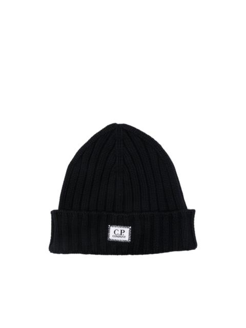 ribbed logo-patch beanie Highlights - Black - Ribbed texture - Wool - Logo patch - Folded brim - C.p. company suggests removing any detachable accessories before washing. Made in Italy Composition Wool 100% Washing instructions Read Manufacturer Guidelines
