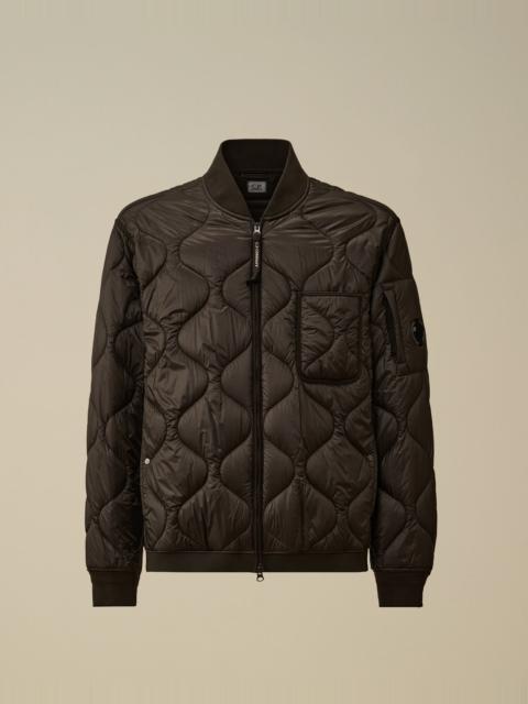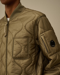 Bomber padded jacket crafted in micro-ripstop opaque 7-denier quilted nylon. The lightness and transparency of the fabric emphasize the structure of the garment. The jacket features C.P. Company’s iconic Lens, a two-way full zip fastening, chest open pocket, and side snap pockets. Finished with ribbed collar, cuffs, and hem. Padded with Primaloft® Silver wadding, an insulation solution with high thermal and breathability properties. Regular fit. - Ribbed collar - Two-way full zip fastening - Chest open pocket - Side snap pockets - Lens detail - Ribbed cuffs and hem - Primaloft® Silver padding - Regular fit CARE & COMPOSITION Care - Wash max 30°C - Mild process - Do not bleach - Do not tumble dry - Ironing maximum temperature 110°C - without steam - Do not dry clean - Line dry - Wash separately - Remove detachable accessories before washing Composition - External fabric: 100% Polyamide / Nylon - Lining: 100% Polyamide / Nylon - Padding (Fiber): 100% Polyester - Secondary lining: 100% Cotton - Third Lining: 100% Polyamide / Nylon SIZE & FITTING - Fits true to size, take your normal size - Model is 186 cm-6' 1" / 98-103 cm chest and is wearing a size L PRODUCT PASSPORT PRODUCT - Weaving: Korea - Dyeing: Korea - Confection: China - Releases plastic microfibers into the environment during washing PACKAGING - Minimum percentage of recycled materials 70%