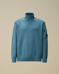 Turtleneck sweater crafted in Lambswool GRS*. The Global Recycled Standard certifies the use of products in conformity with environmental and social criteria extended to all stages of the production chain. The knit features C.P. Company’s iconic Lens, contrast stitching, ribbed cuffs and hem. Gauge 7. Regular fit.*Lambswool items in the colour Gauze White are not produced using GRS-certified yarn. - Ribbed turtleneck - Lens detail - Contrast stitching - Ribbed cuffs and hem - 7 Gauge knit - Regular fit CARE & COMPOSITION Care - Hand wash - Do not bleach - Do not tumble dry - Ironing maximum temperature 110°C - without steam - Dry cleaning in tetrachloroethene - mild process - Flat drip dry in the shade - Remove detachable accessories before washing - Dry inside out Composition - External fabric: 80% Wool, 20% Polyamide / Nylon SIZE & FITTING - Fits true to size, take your normal size - Model is 186 cm-6' 1" / 98-103 cm chest and is wearing a size L PRODUCT PASSPORT PRODUCT - Weaving: Italy - Dyeing: Italy - Confection: Moldova - Product contains at least 50% of recycled material PACKAGING - Minimum percentage of recycled materials 70%