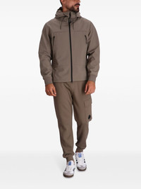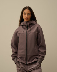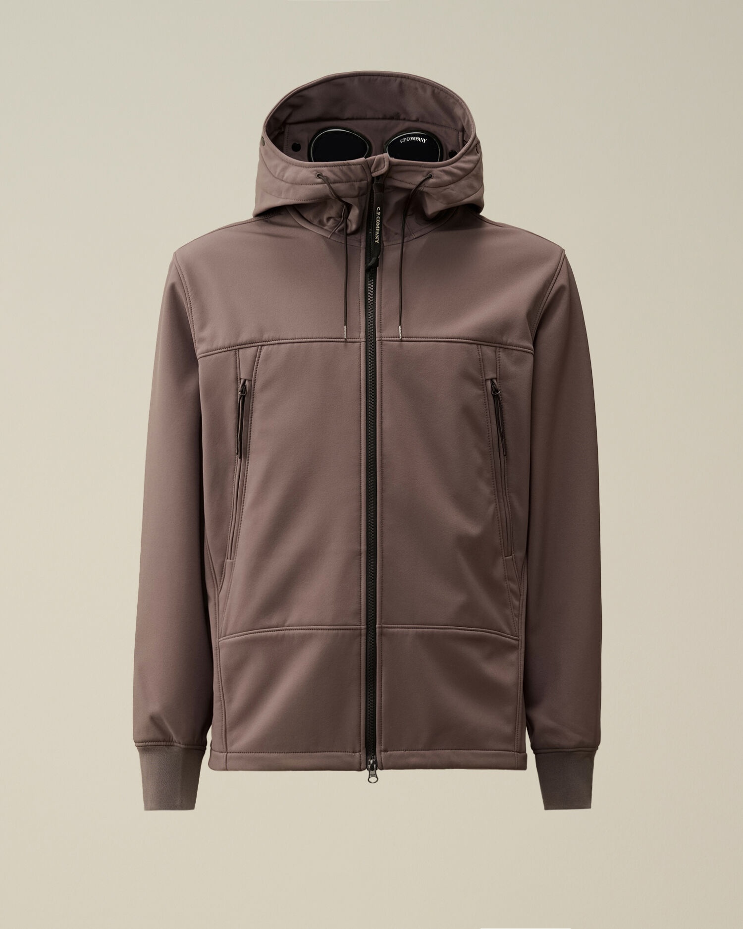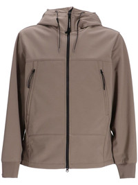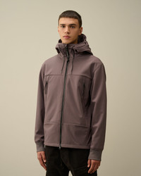 Goggle jacket crafted in C.P. Shell-R, a 3-layer softshell stretch, made from recycled polyester yarn. Bonded for water column of 5000mm. Windproof anti-drop treated. - Adjustable Goggle hood - Two-way full zip fastening - Side zip pockets - Ribbed cuffs - Regular fit CARE & COMPOSITION CARE - Wash max 30°C - Mild process - Do not bleach - Do not tumble dry - Ironing maximum temperature 110°C - without steam - Do not dry clean - Line dry - Wash inside out - Remove detachable accessories before washing COMPOSITION - Lining: 100% Polyester - Secondary lining: 100% Cotton - Inner main fabric: 100% Polyester - External main fabric: 94% Polyester, 6% Elastane / Spandex SIZE & FITTING - Fits true to size, take your normal size - Model is 186 cm-6' 1" / 98-103 cm chest and is wearing a size L - Female model is 170 cm - 5' 57" and is wearing a size M