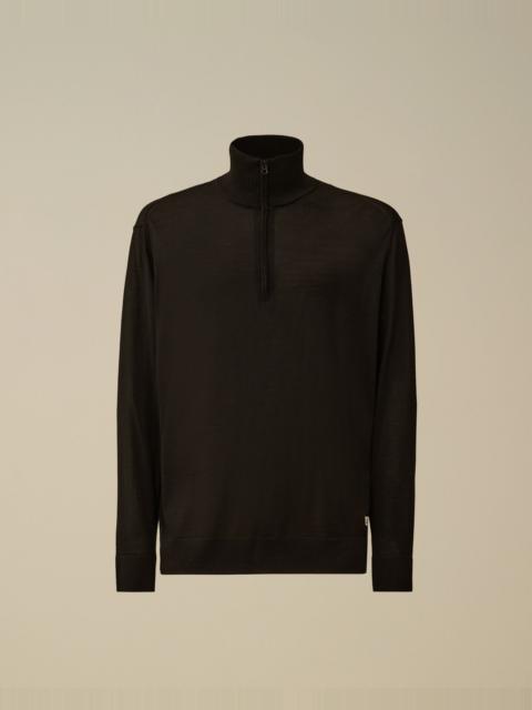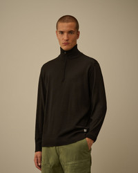 Half zip sweater crafted in a blend of silk and ultrafine merino wool. The knit features a ribbed collar, ribbed cuffs and hem, and a sewn logo label on the hem. Gauge 14. Regular fit. - Ribbed collar - Half zip fastening - Ribbed cuffs and hem - Sewn logo label on hem - 14 Gauge knit - Regular fit CARE & COMPOSITION Care - Hand wash - Do not bleach - Do not tumble dry - Ironing maximum temperature 110°C - without steam - Do not dry clean - Flat drip dry - Wash inside out Composition - External fabric: 70% Wool, 30% Silk SIZE & FITTING - Fits true to size, take your normal size - Model is 186 cm-6' 1" / 98-103 cm chest and is wearing a size L PRODUCT PASSPORT PRODUCT - Weaving: Italy - Dyeing: Italy - Confection: Croatia PACKAGING - Minimum percentage of recycled materials 70%