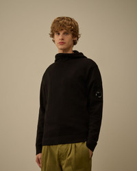 Hooded sweater crafted in soft stretch cotton. The fabric ensures flexibility and comfort while maintaining a refined appearance. The knit features an adjustable hood with a front drawstring, ribbed hood rim, and C.P. Company’s iconic Lens. Finished with contrast stitching at the armholes and neck. Gauge 7. Regular fit. - Adjustable hood with front drawstring - Ribbed hood rim - Armholes and neck contrast stitching - Lens detail - 7 Gauge knit - Regular fit CARE & COMPOSITION Care - Hand wash - Do not bleach - Do not tumble dry - Ironing maximum temperature 110°C - without steam - Do not dry clean - Flat drip dry - Remove detachable accessories before washing Composition - External fabric: 53% Cotton, 27% Polyester, 20% Polyamide / Nylon SIZE & FITTING - Fits true to size, take your normal size - Model is 186 cm-6' 1" / 98-103 cm chest and is wearing a size L PRODUCT PASSPORT PRODUCT - Weaving: Italy - Dyeing: Turkiye - Confection: Tunisia PACKAGING - Minimum percentage of recycled materials 70%